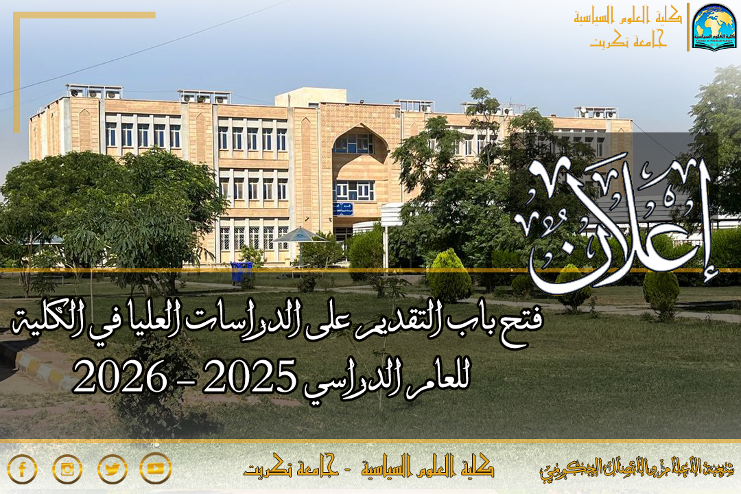 تعلن كلية العلوم السياسية – جامعة تكريت عن فتح باب التقديم على الدراسات العليا في الكلية للعام الدراسي 2025 – 2026 ,في الاختصاصات التالية: