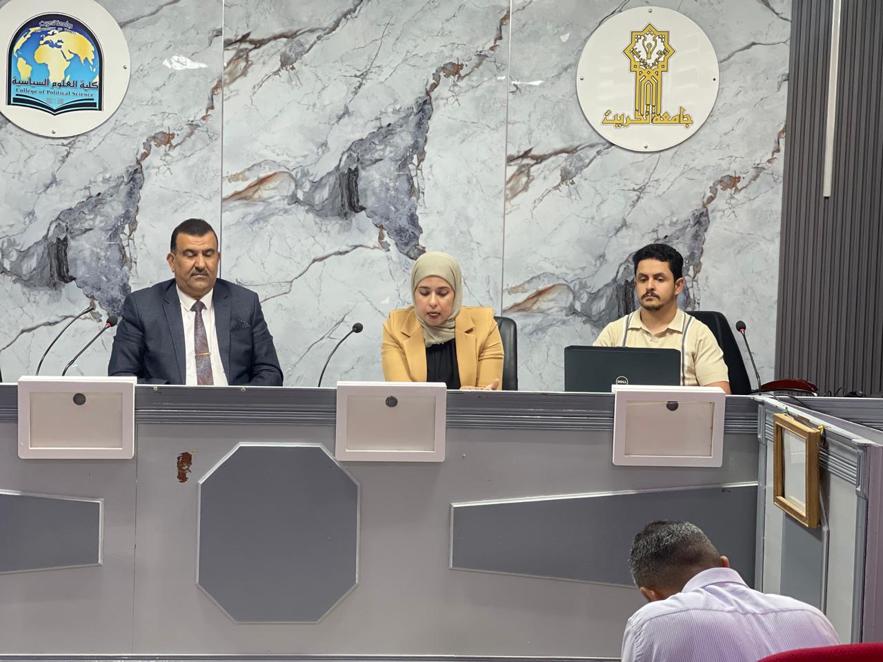 برعاية السيد رئيس جامعة تكريت الأستاذ الدكتور وعد محمود رؤوف المحترم وباشراف السيد عميد كلية العلوم السياسية الأستاذ الدكتور قاسم علوان سعيد والسيد مدير مركز التعليم المستمر ا.م.د. سياف عبد حسين اقامت كلية العلوم السياسية دورة علمية حضورية تحت عنوان (تطوير مهارات طلبة الدراسات العليا في مواجهة خطاب الكراهية عن طريق استطلاع الرأي العام)