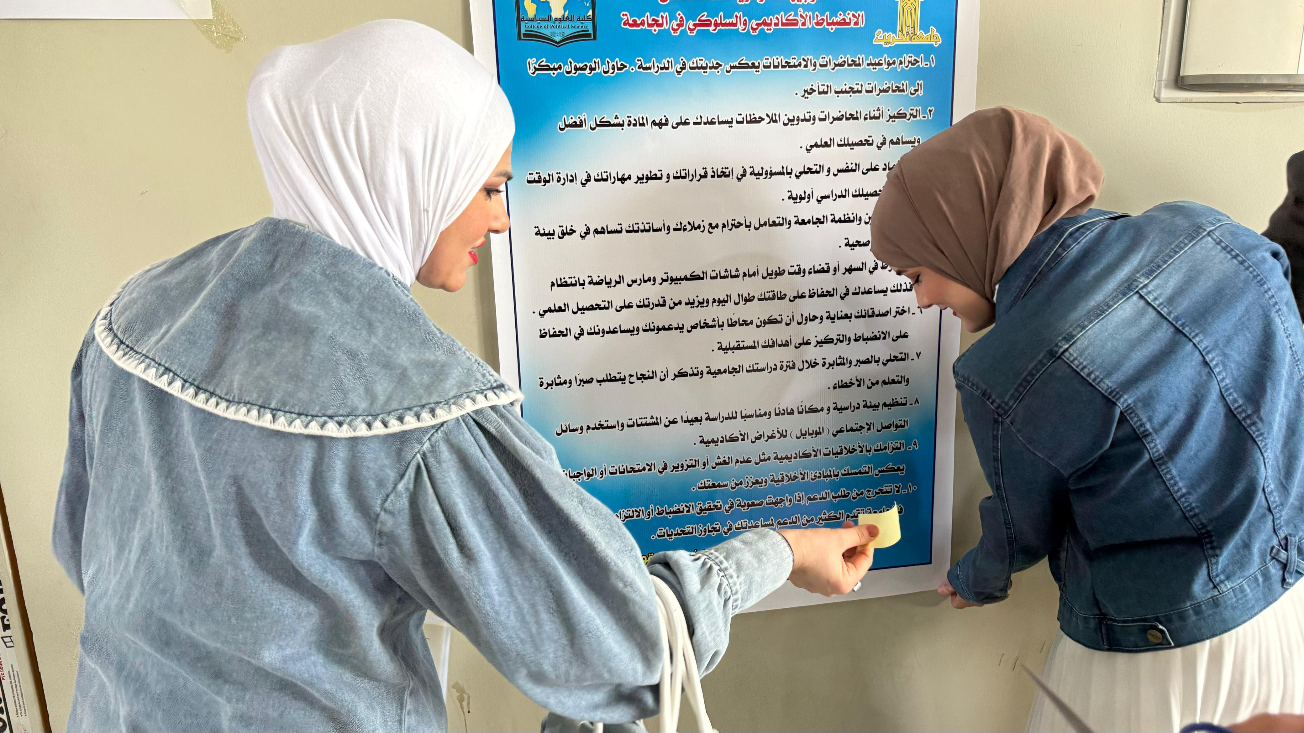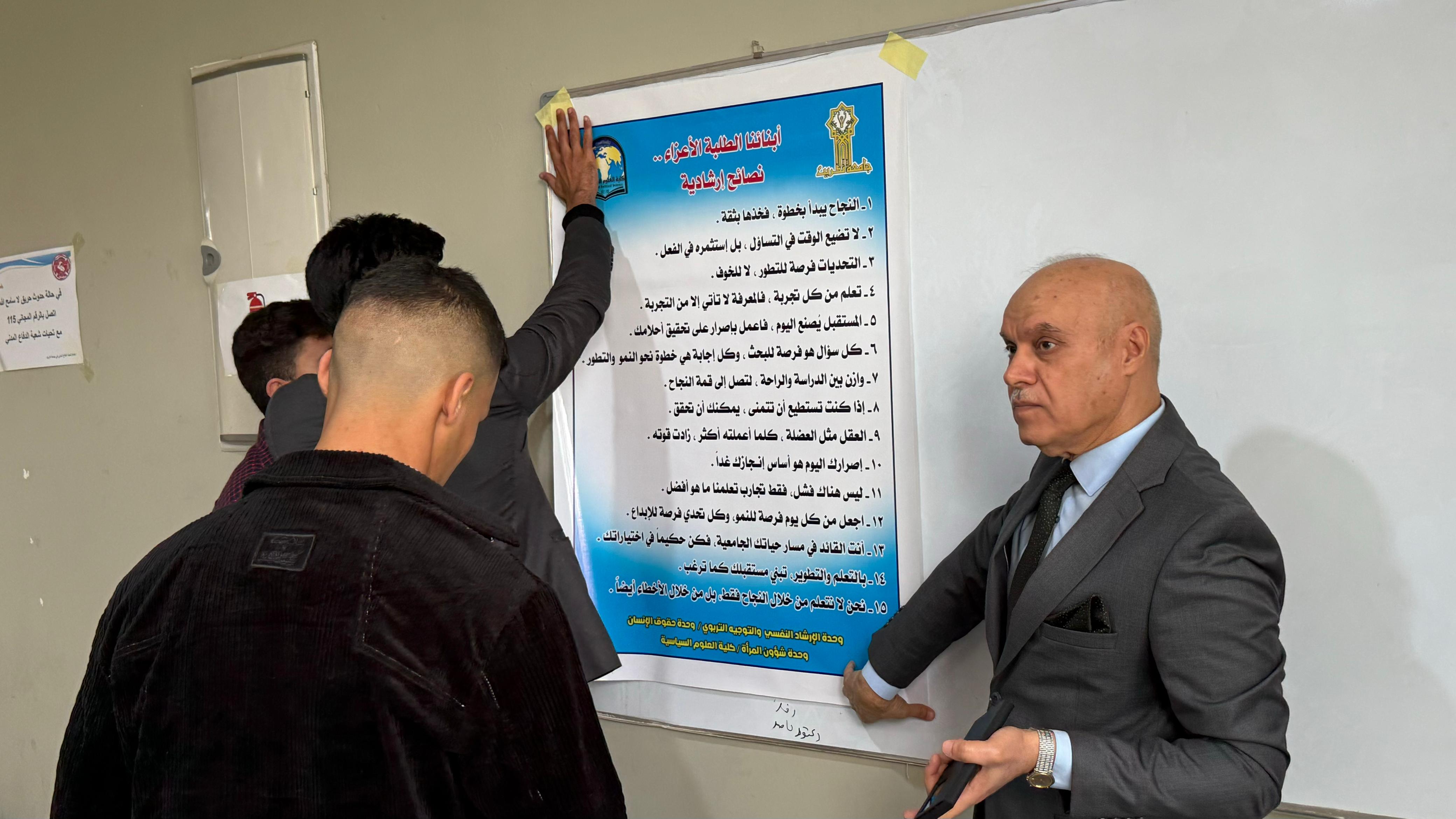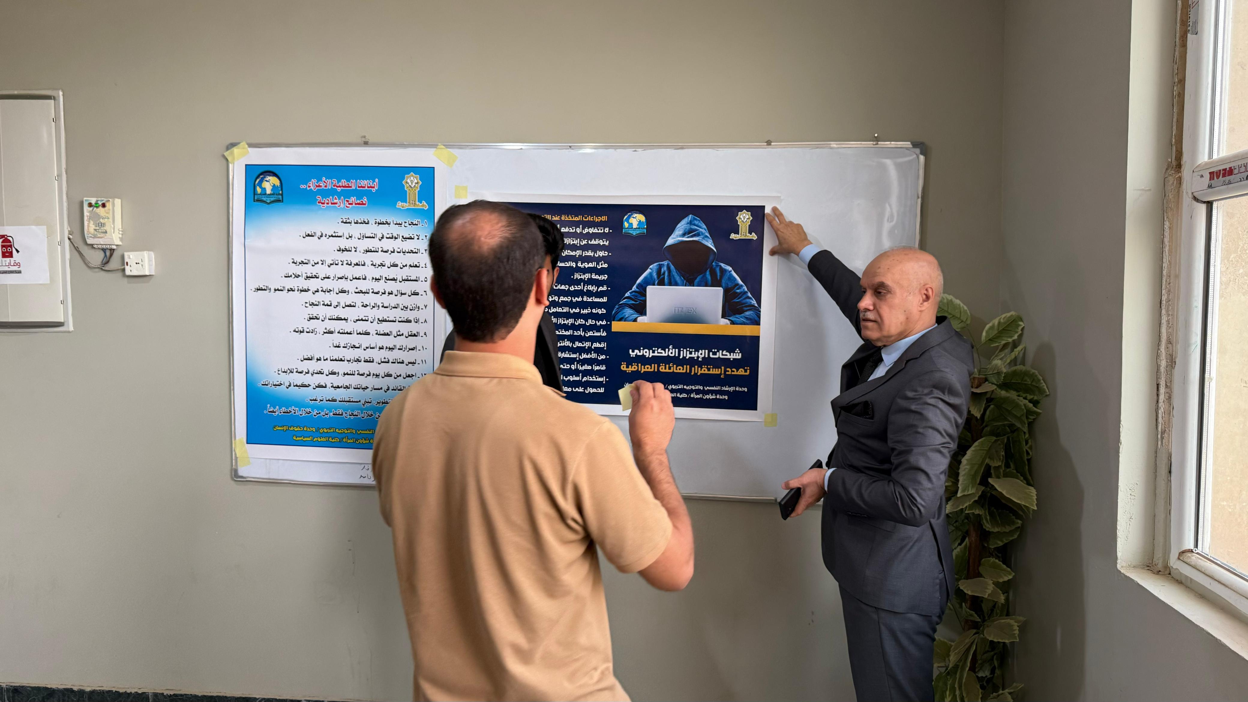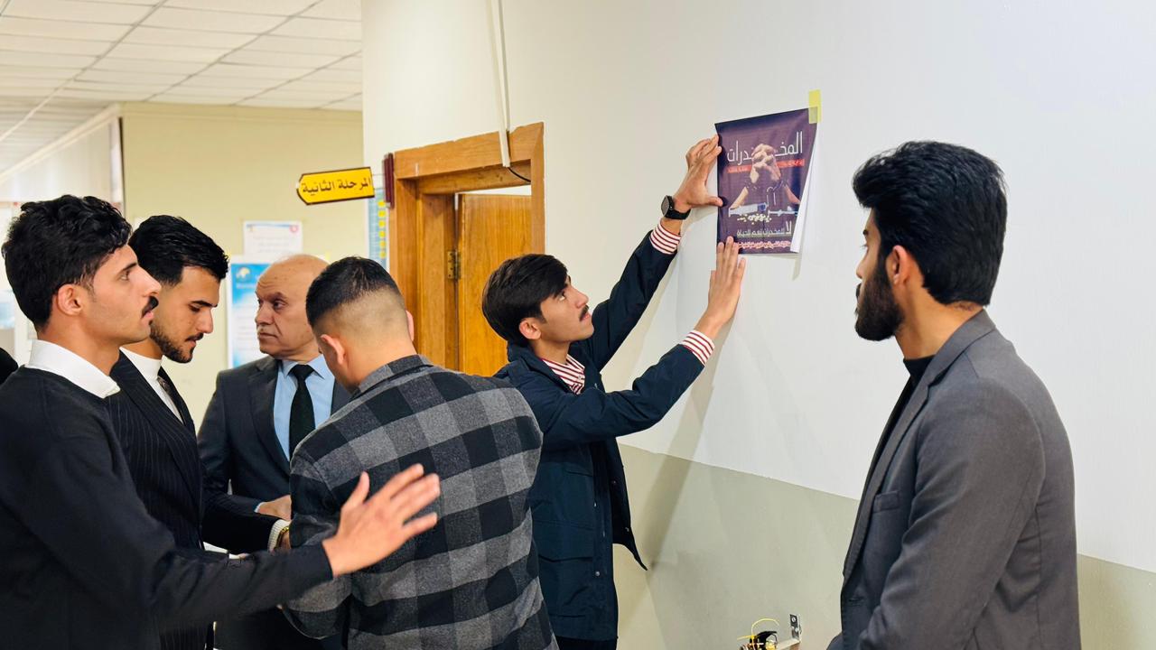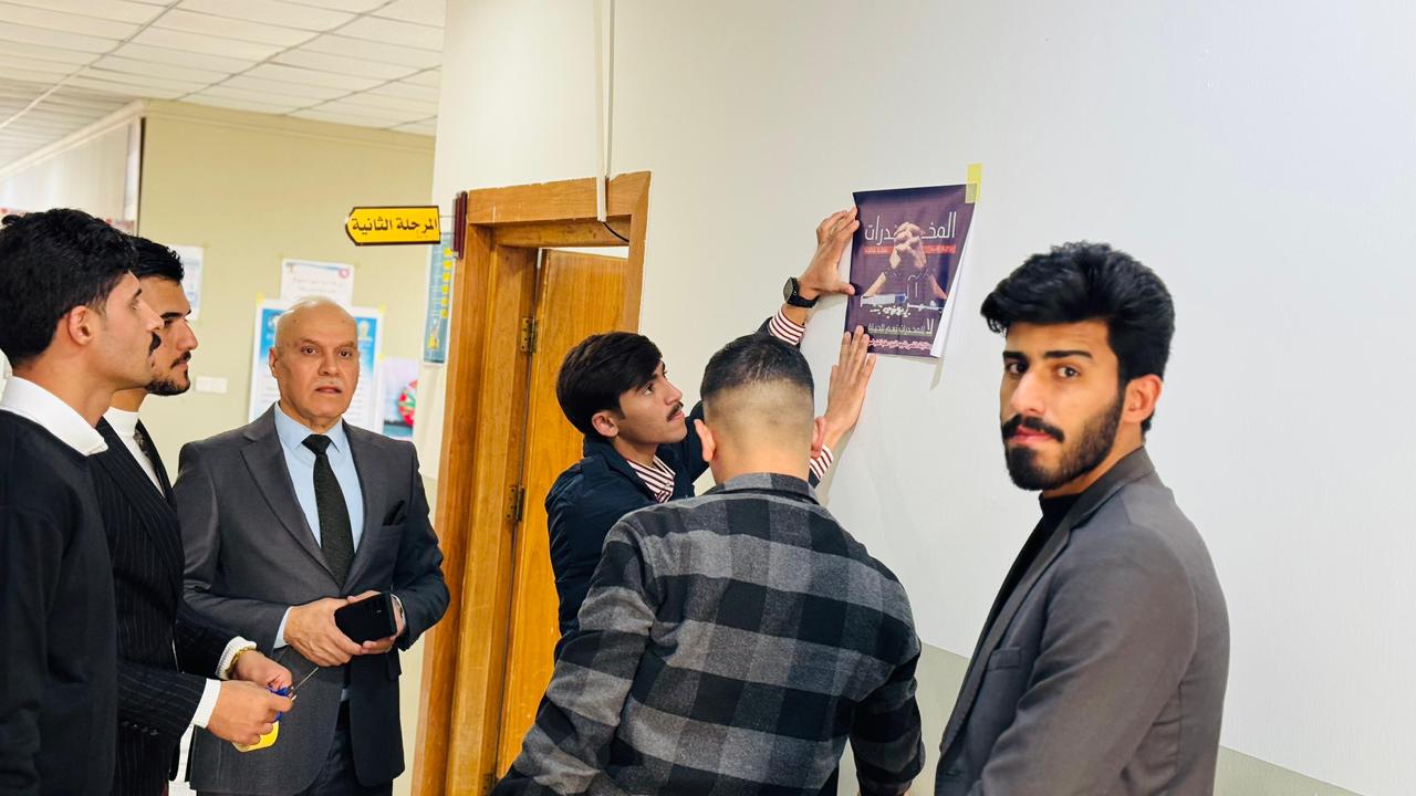 بناءً على توجيهات وزارة التعليم العالي والبحث العلمي وحرصها على ابناءها الطلبة بإقامة أسبوع للإرشاد النفسي والتوجيه التربوي وفي اليوم الاول في سياق برنامج الكلية المخصص لهذا الاسبوع وبرعاية السيد رئيس جامعة تكريت الاستاذ الدكتور وعد محمود رؤوف المحترم واشراف وحضور السيد عميد كلية العلوم السياسية الأستاذ الدكتور قاسم علوان سعيد المحترم والسادة المعاون الإداري دكتور حمادي حسن العطية والمعاون العلمي في الكلية الدكتور حسام كصاي حسين اقامت وحدة الارشاد النفسي والتوجيه التربوي في الكلية برئاسة الدكتور عباس فاضل عطوان وبمشاركة عدد من طلبة الكلية بنشر بوسترات وملصقات جدارية توعوية تضمنت ثلاثة محاور أساسية الأول المخدرات واضرارها وطرق الوقاية منها والمحور الثاني تضمن الابتزاز الالكتروني وكيفية التصدي له والمحور الثالث تناول موضوع الانضباط والسلوك الجامعي المثالي للطالب في الجامعة.