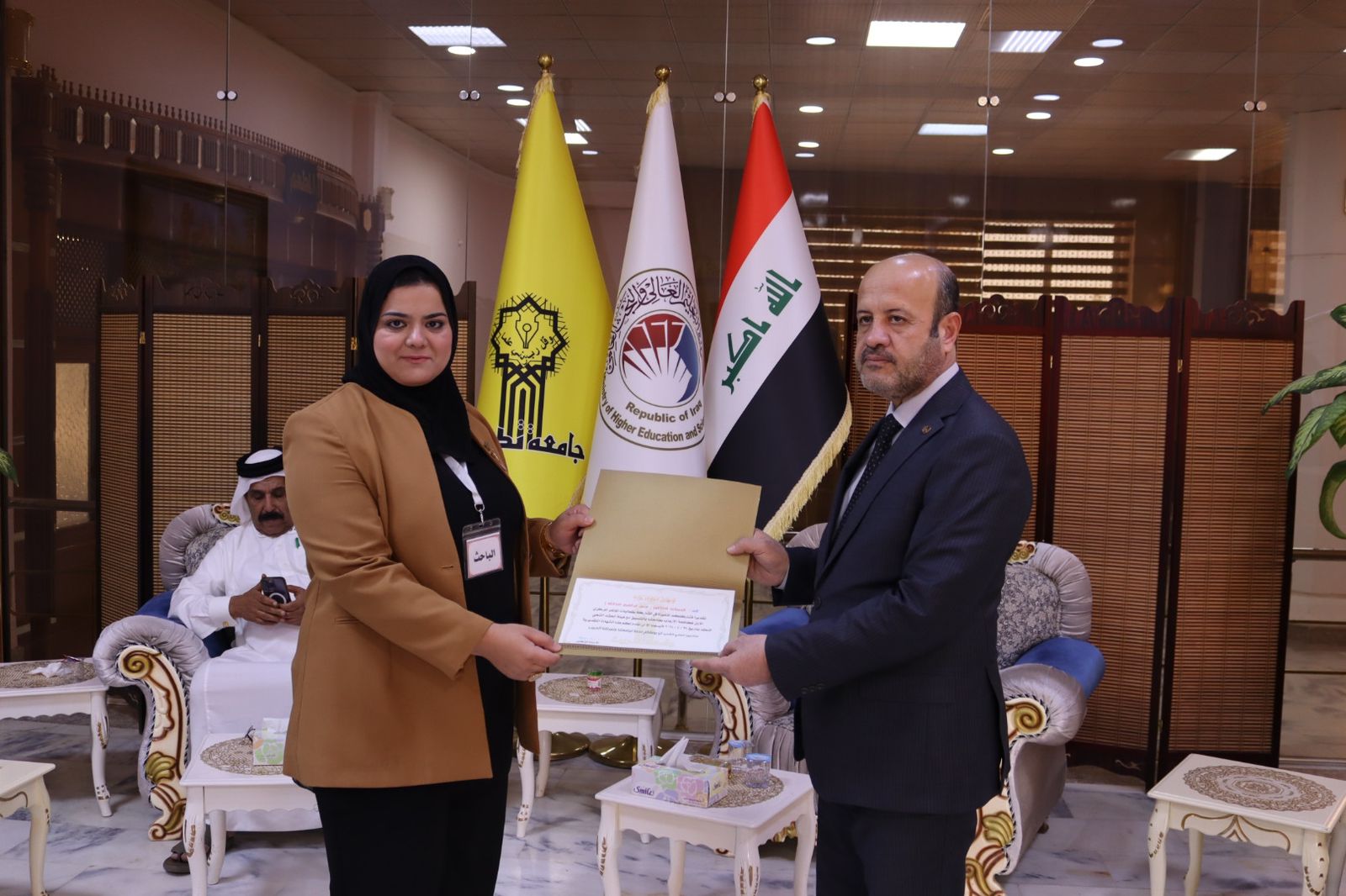 وفي نهاية مراسيم المؤتمر تم تكريم الباحثين والمشاركين في انجاح المؤتمر من قبل السيد رئيس الجامعة المحترم بدروع وشهادات تقديرية وكان لباحثي كليتنا نصيب كبير منها.
