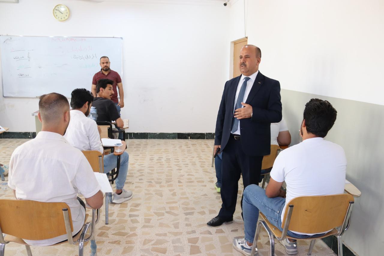 خلال الزيارة تفقد ابناءه الطلبة والأسئلة وانسيابية العملية الامتحانية في الكلية. والله ولي التوفيق.