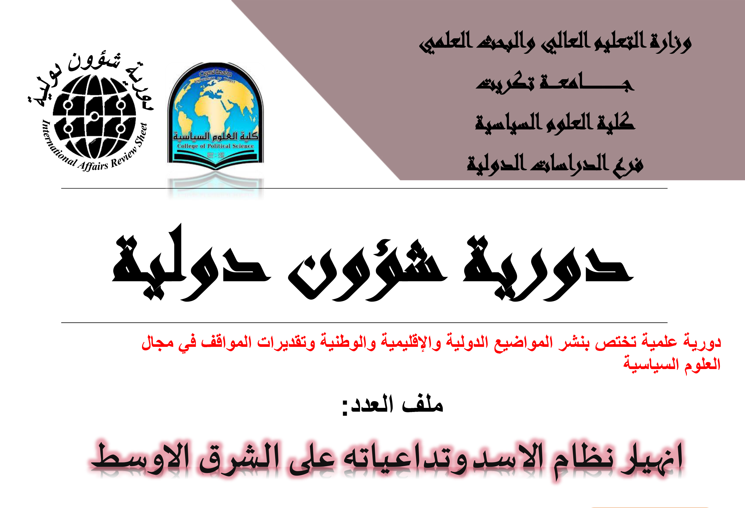باشراف السيد عميد كلية العلوم السياسية ا.د قاسم علوان سعيد المحترم وتحت عنوان "انهيار نظام الاسد وتداعياته على الشرق الاوسط" قام فرع الدراسات الدولية في الكلية باصدار العدد الثالث من دورية شؤون دولية لشهر كانون الاول 2024، وتضمن هذا العدد مجموعة مقالات علمية تخص سقوط حلب في 27 نوفمبر عام 2024 ومستقبل سوريا بعد السقوط.