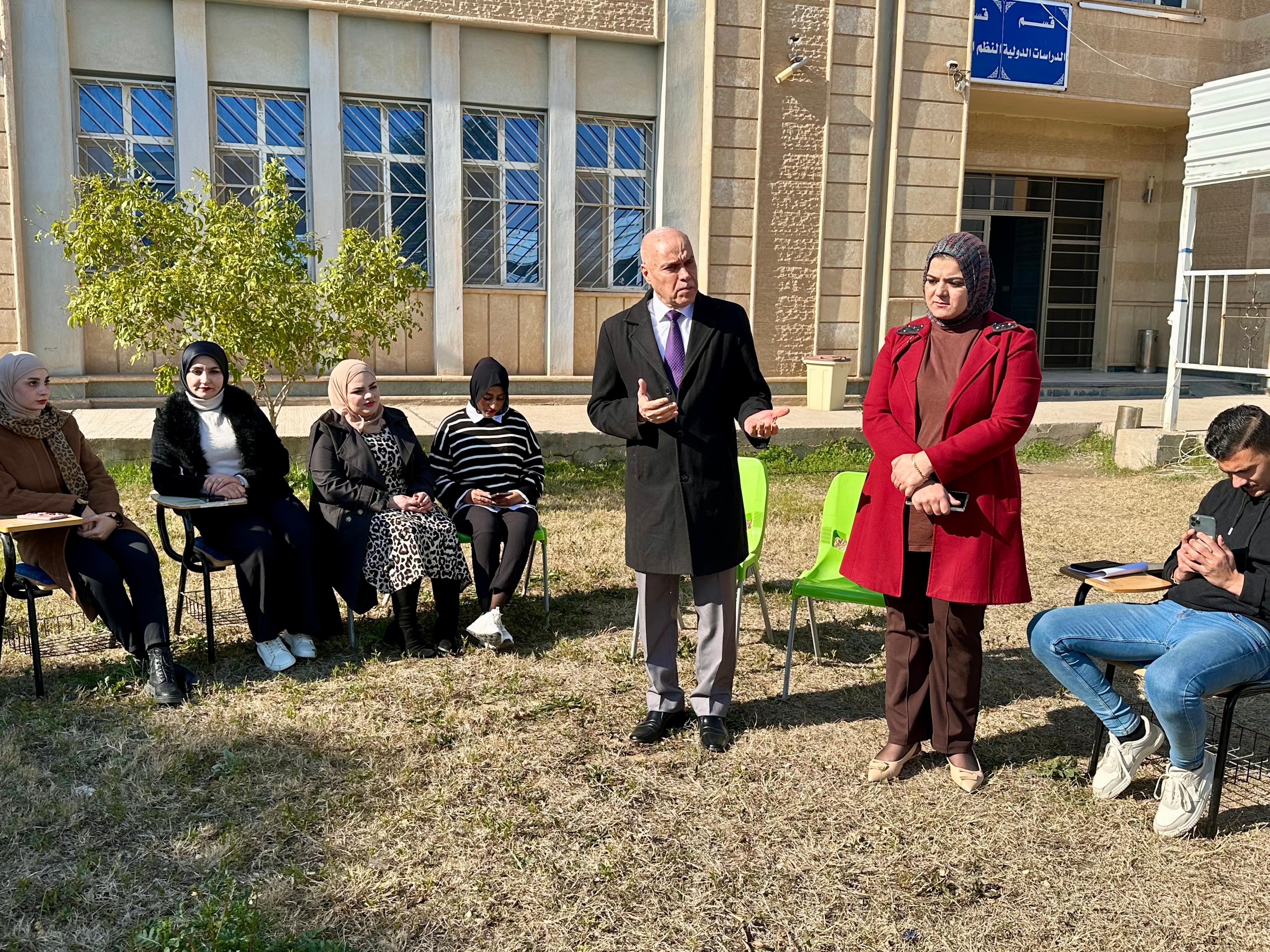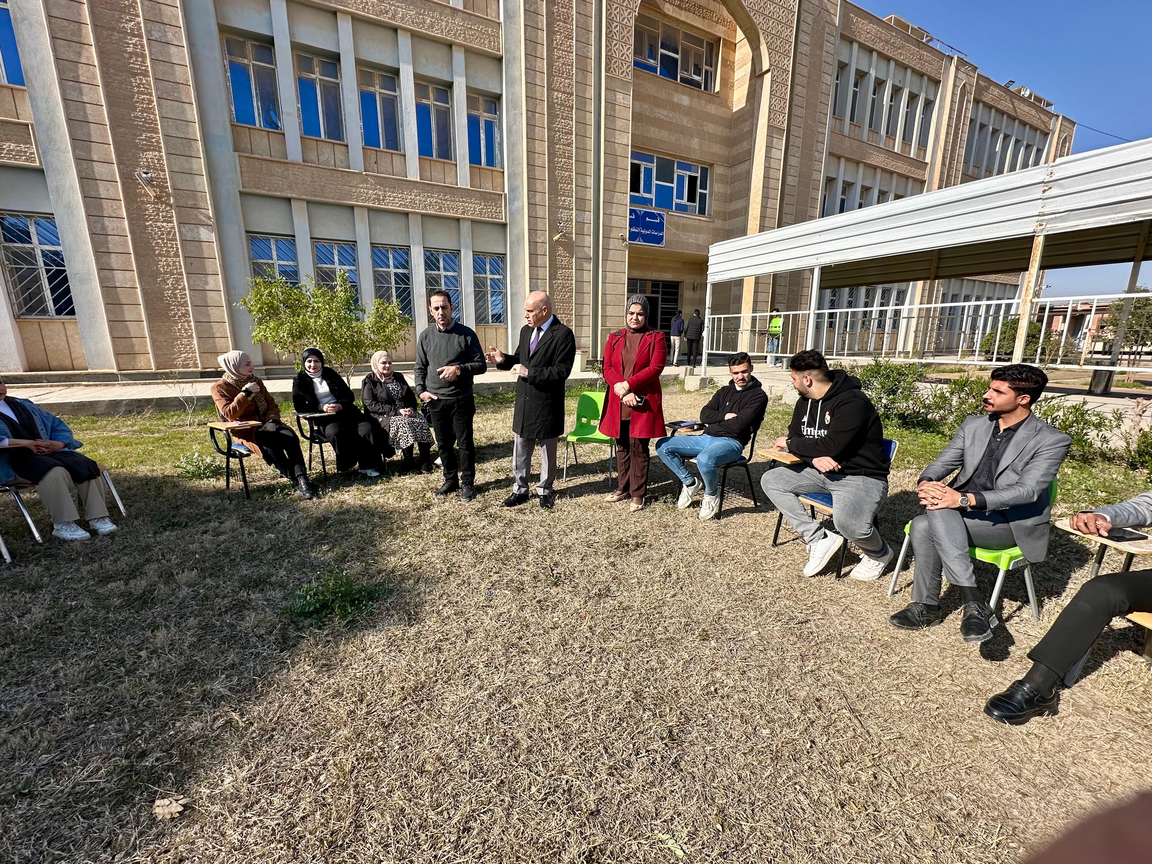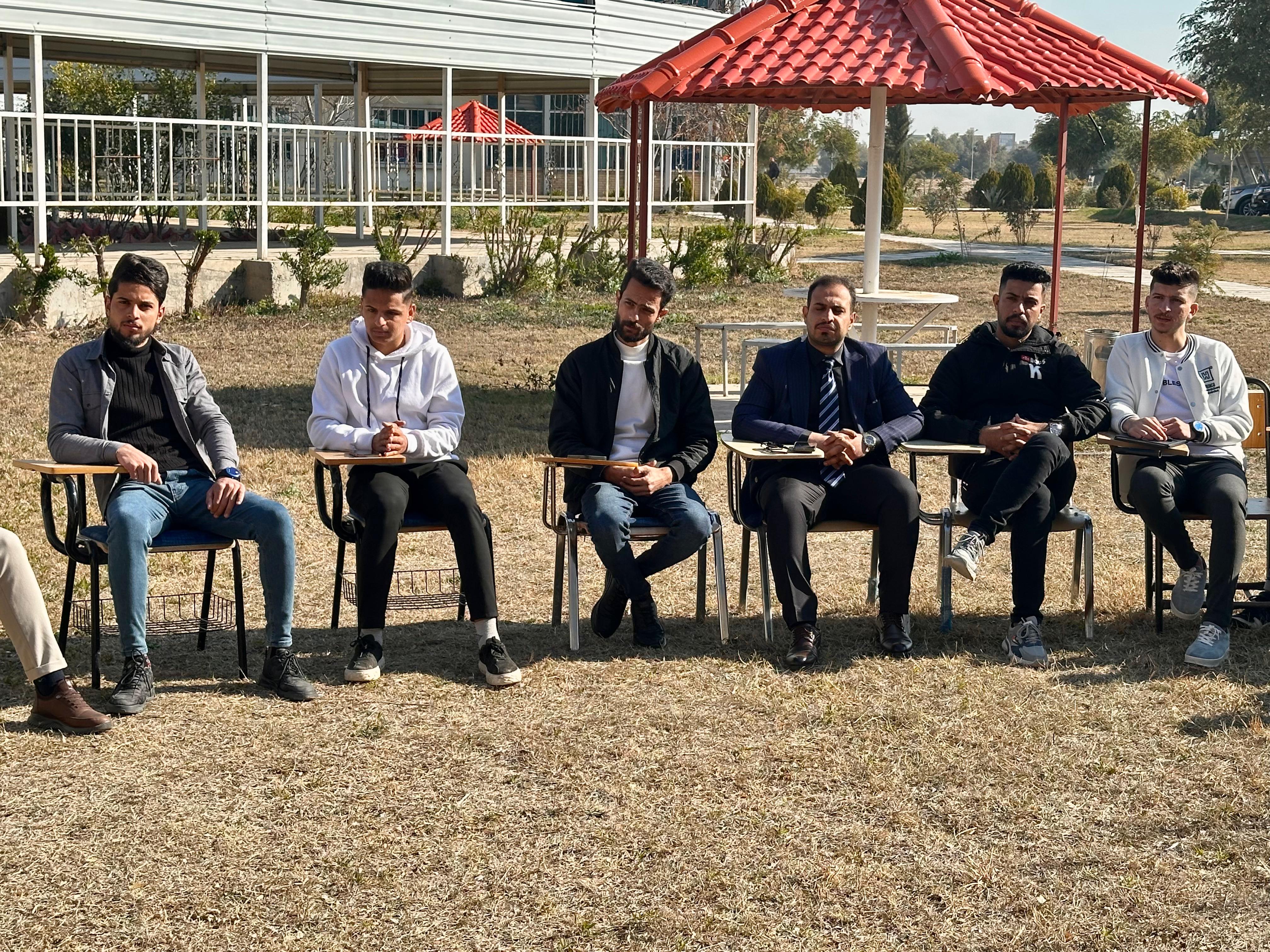 باشراف الاستاذ الدكتور قاسم علوان سعيد عميد الكلية تم اقامة محاضرة ارشاد واستماع لطلبة الكلية وللمراحل الاربعة اليوم الثلاثاء الموافق 11/2/2025 على حدائق الكلية.