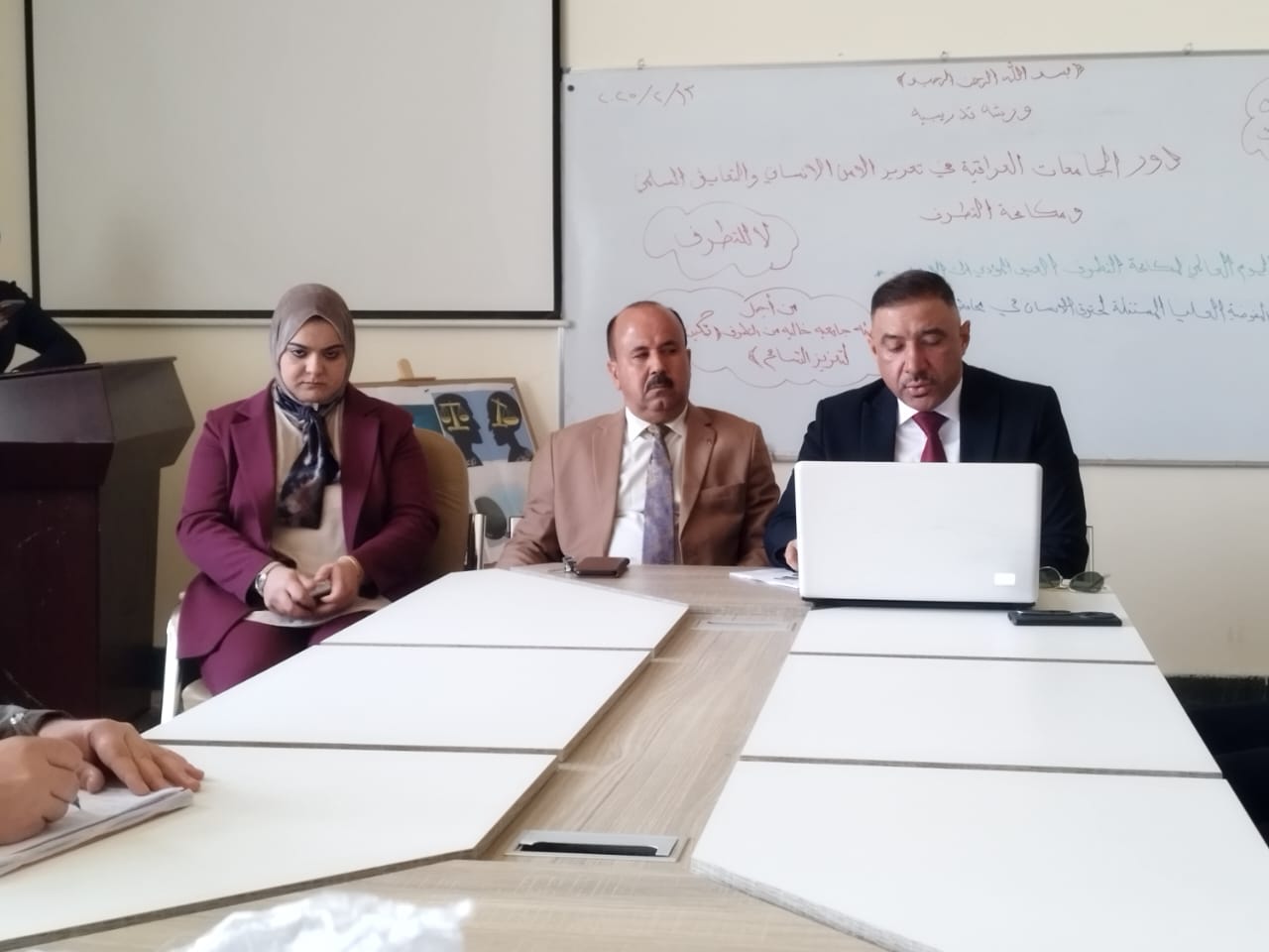 بمناسبة اليوم العالمي للحد من التطرف وبتوجية من السيد رئيس جامعة تكريت الاستاذ الدكتور وعد محمود رؤوف المحترم وبرعاية الاستاذ الدكتور قاسم علوان سعيد عميد كلية العلوم السياسية المحترم وانطلاقا من مبدأ خدمة المجتمع ومعالجته من الظواهر السلبية قامت وحدة حقوق الأنسان برئاسة الدكتورة حنين ابراهيم عبدالله وبالتعاون مع المفوضية العليا المستقلة لحقوق الأنسان في محافظة صلاح الدين والمتمثلة بالمستشار القانوني الاستاذ أدريس احمد خلف ورشة تدريبية اليوم الخميس ١٣/ ٢/ ٢٠٢٥ وعلى قاعة السلام في الكلية، تحت عنوان ( دور الجامعات في تعزيز الأمن الأنساني والتعايش السلمي ومكافحة التطرف).