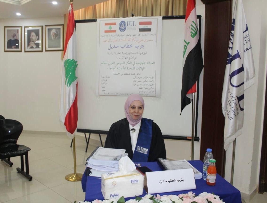 تتقدم عمادة كلية العلوم السياسية جامعة تكريت متمثلة بالاستاذ الدكتور قاسم علوان سعيد ومنتسبيها كافة باحر التهاني والتبريكات الى التدريسية يثرب خطاب منديل بمناسبة حصولها على شهادة الدكتوراه في العلوم السياسية، متمنين لها المزيد من التقدم والنجاح خدمة للمسيرة العلمية في جامعتنا وبلدنا العزيز.