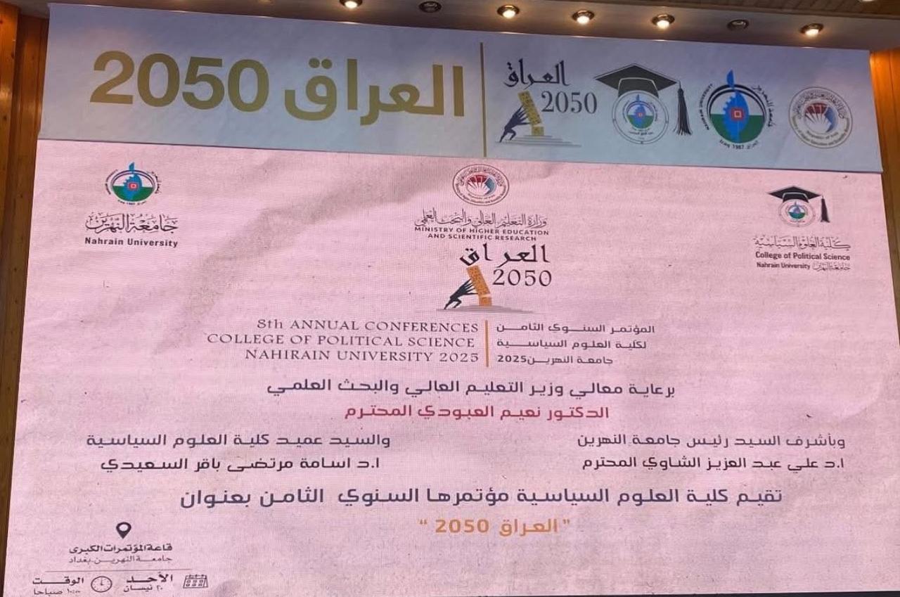 شارك التدريسي الأستاذ الدكتور حازم صباح احميد ببحث في مؤتمر كلية العلوم السياسية/جامعة النهرين السنوي الثامن والذي أقيم تحت عنوان "العراق 2050" اليوم الاحد الموافق 2025/4/20 وعلى رحاب قاعة المؤتمرات الكبرى في الجامعة.