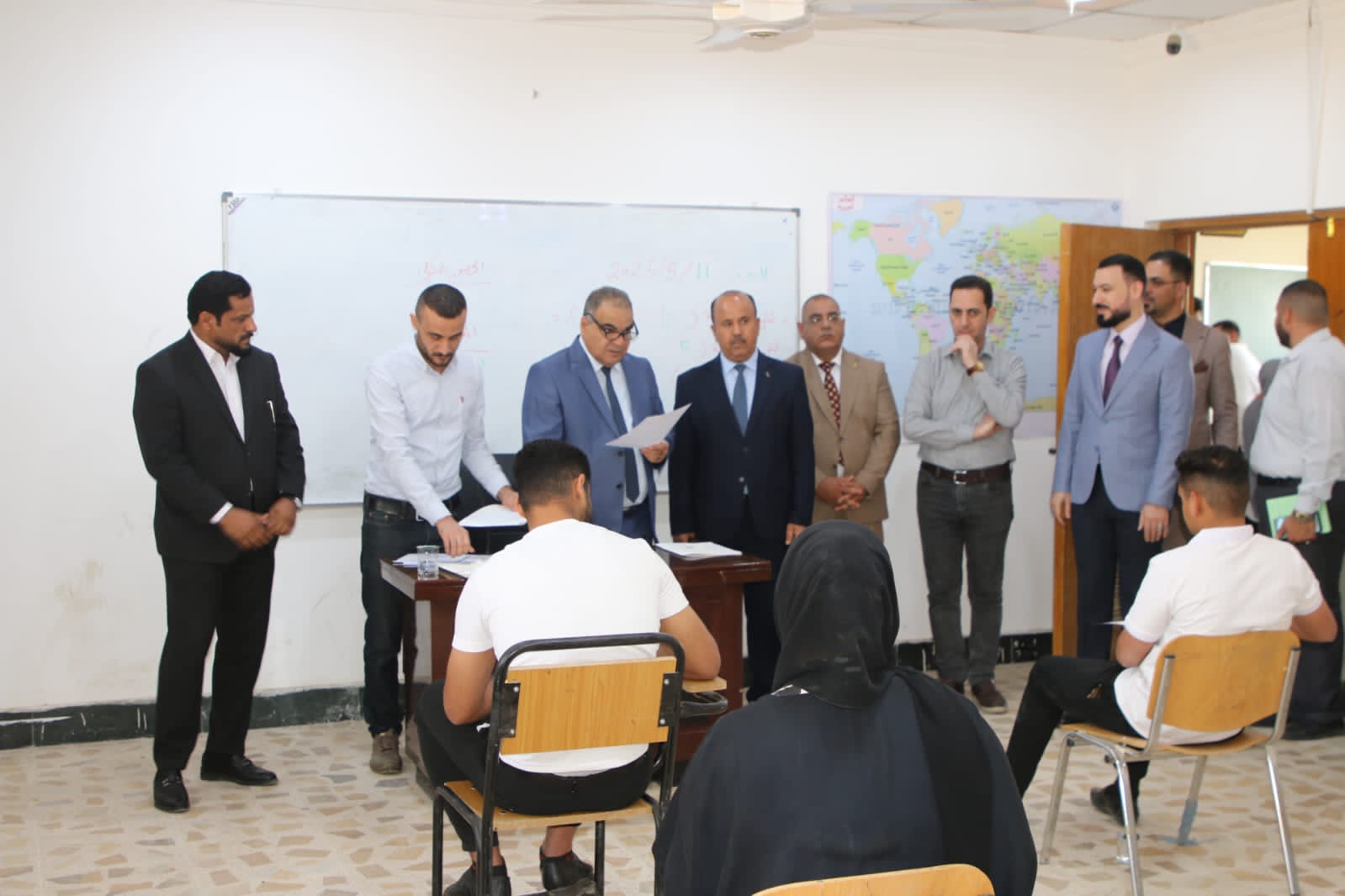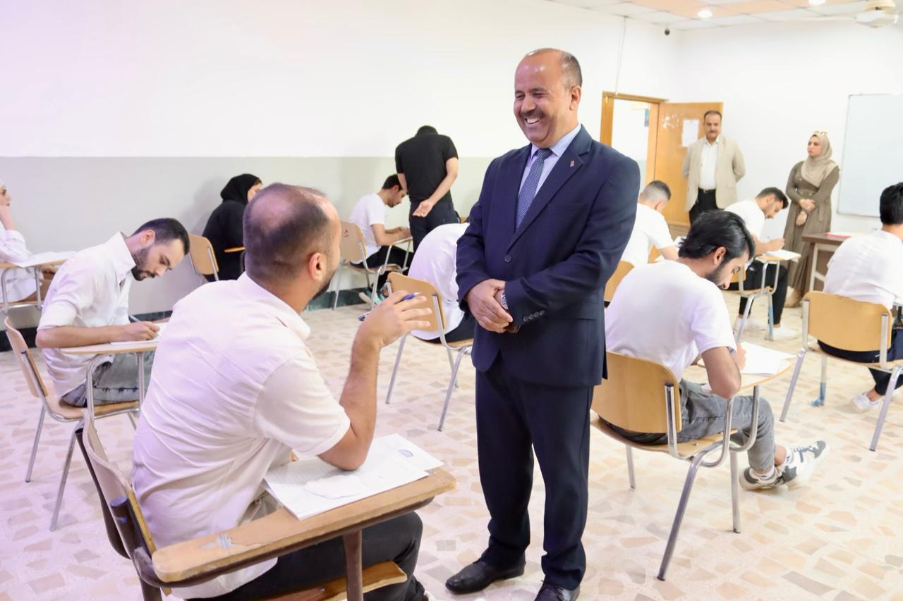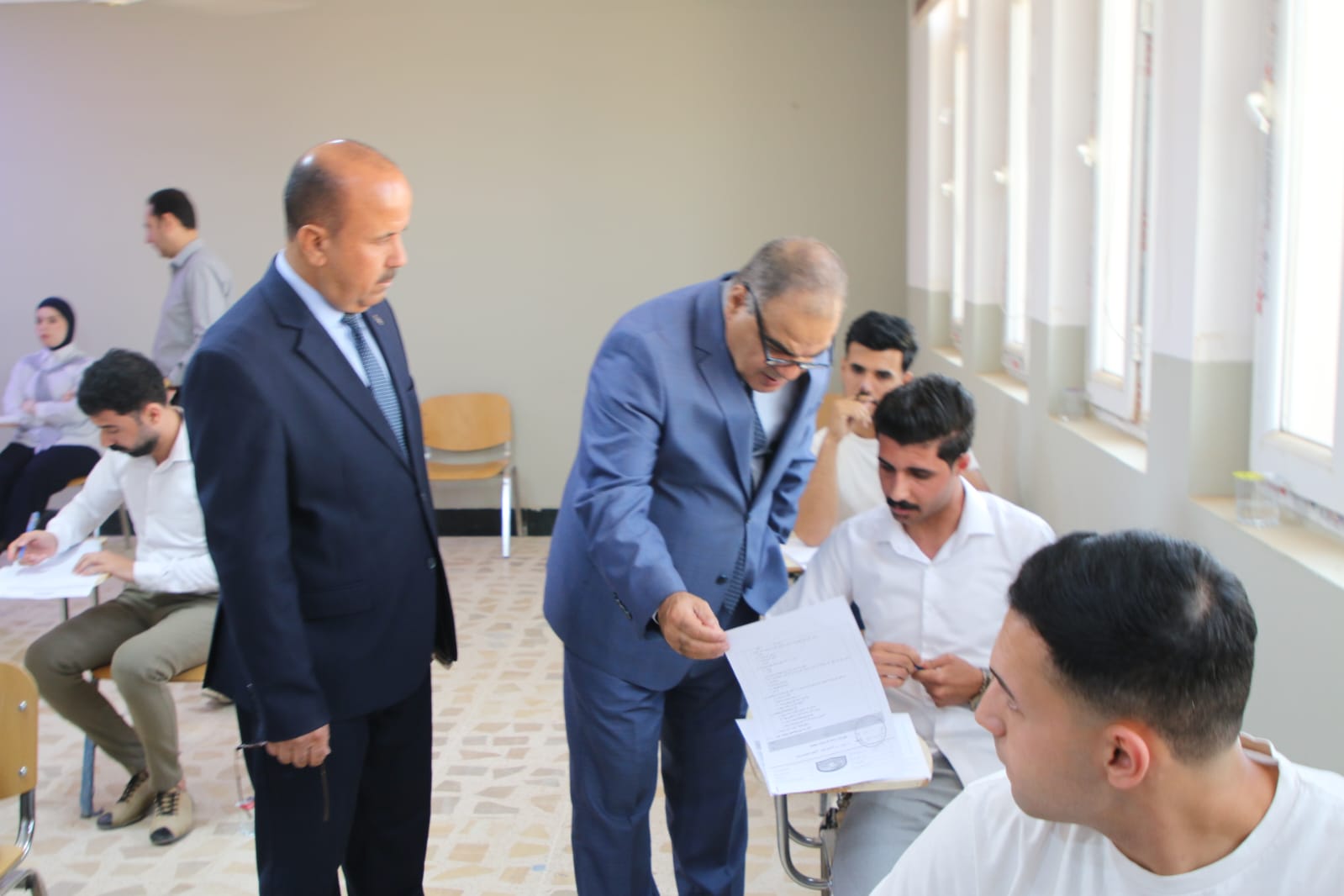 حيث تفقد القاعات الامتحانية للاطلاع على الإجراءات والاسئلة الامتحانية واللجنة الامتحانية، من جانبه اشاد السيد المساعد العلمي بالجهود التي تقدمها عمادة الكلية واللجان الامتحانية في تهيئة الظروف الملائمة للطلبة في أداء امتحاناتهم.