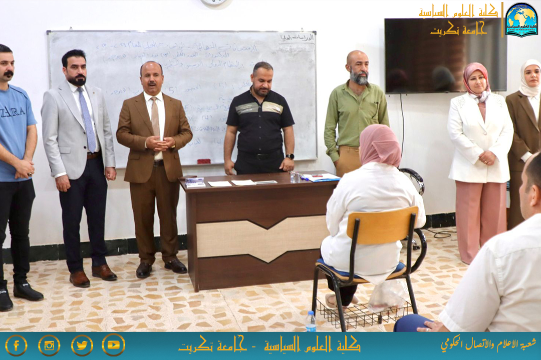 على بركة الله انطلقت صباح هذا اليوم الاثنين المصادف 16/6/2025 في كلية العلوم السياسية جامعة تكريت الامتحانات النهائية لطلبة الدراسات العليا لدراسة الدكتوراه عام علوم سياسية والماجستير في اختصاص النظم السياسية والدراسات الدولية الدور الأول للعام الدراسي 2024-2025.
