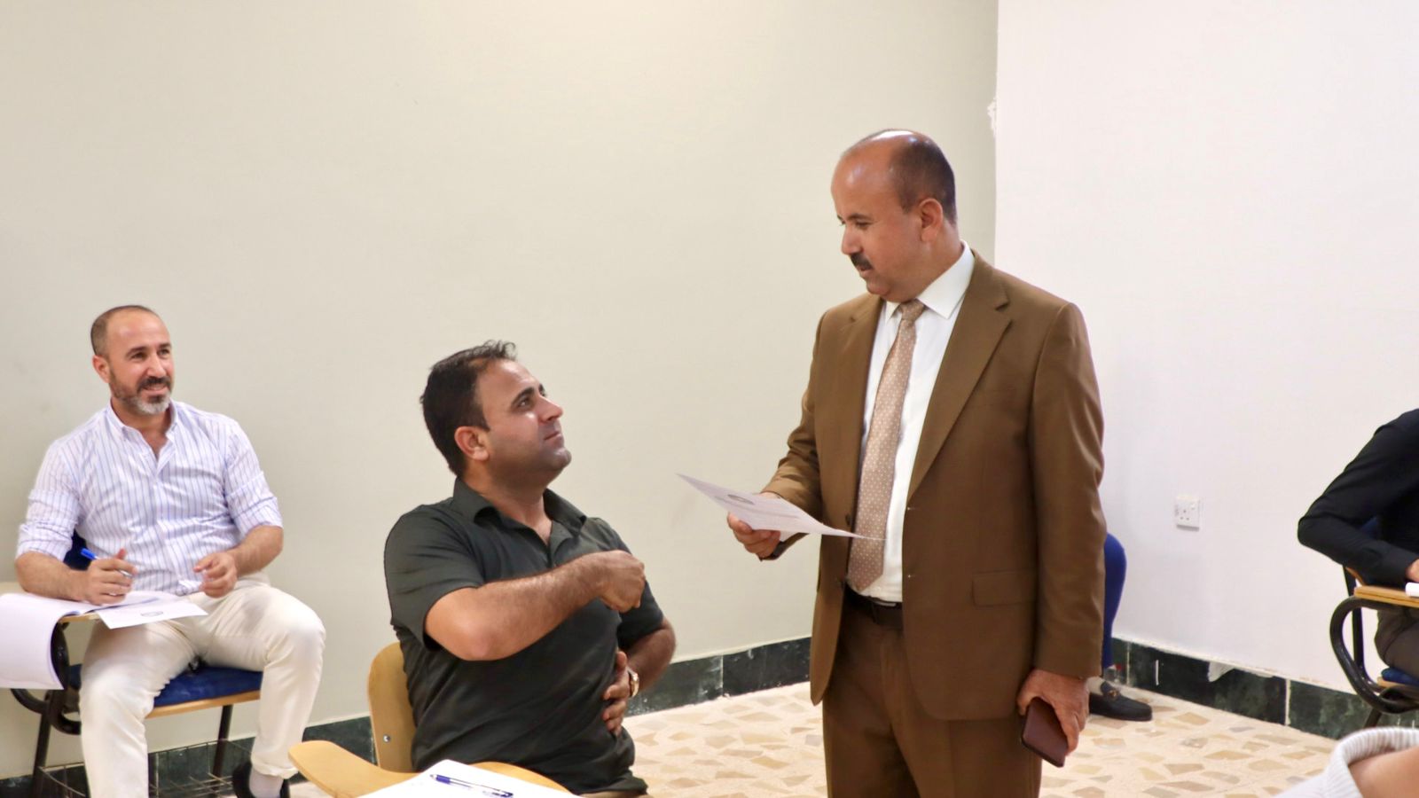 خلال ذلك تفقد السيد عميد الكلية الأستاذ الدكتور قاسم علوان سعيد برفقة السادة المعاونين العلمي والاداري القاعات الامتحانية للاطلاع على سير الامتحانات وضمان أدائها بشكل منتظم والاطلاع على نماذج الأسئلة والأجواء الامتحانية، والتأكد من توفر جميع المستلزمات التي تضمن راحة الطلبة.