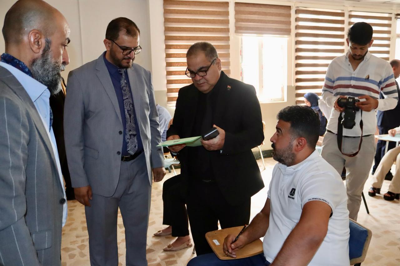 خلال ذلك زار السيد مساعد رئيس الجامعة للشؤون العلمية الأستاذ الدكتور حسن حسين إبراهيم الكلية وكذلك وفد من لجنة مركزية معدة من قبل رئاسة الجامعة لمتابعة الامتحان التنافسي في الكليات كافة وذلك لمتابعة والاطلاع على الامتحان التنافسي في الكلية.