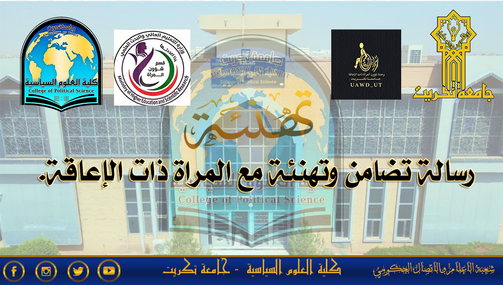 بمناسبة عيد الاضحى المبارك تتقدم كلية العلوم السياسية ممثلة أ.د. قاسم علوان سعيد عميد الكلية المحترم، و م.م عهود فرحان الحشماوي عضو ارتبط وحدة شؤون المراه في الكلية بأطيب التهاني وأصدق الأمنيات، سائلين الله أن يعيده عليكِ بالخير واليُمن والبركات ، وأن يملأ أيامك بالفرح والسلام.