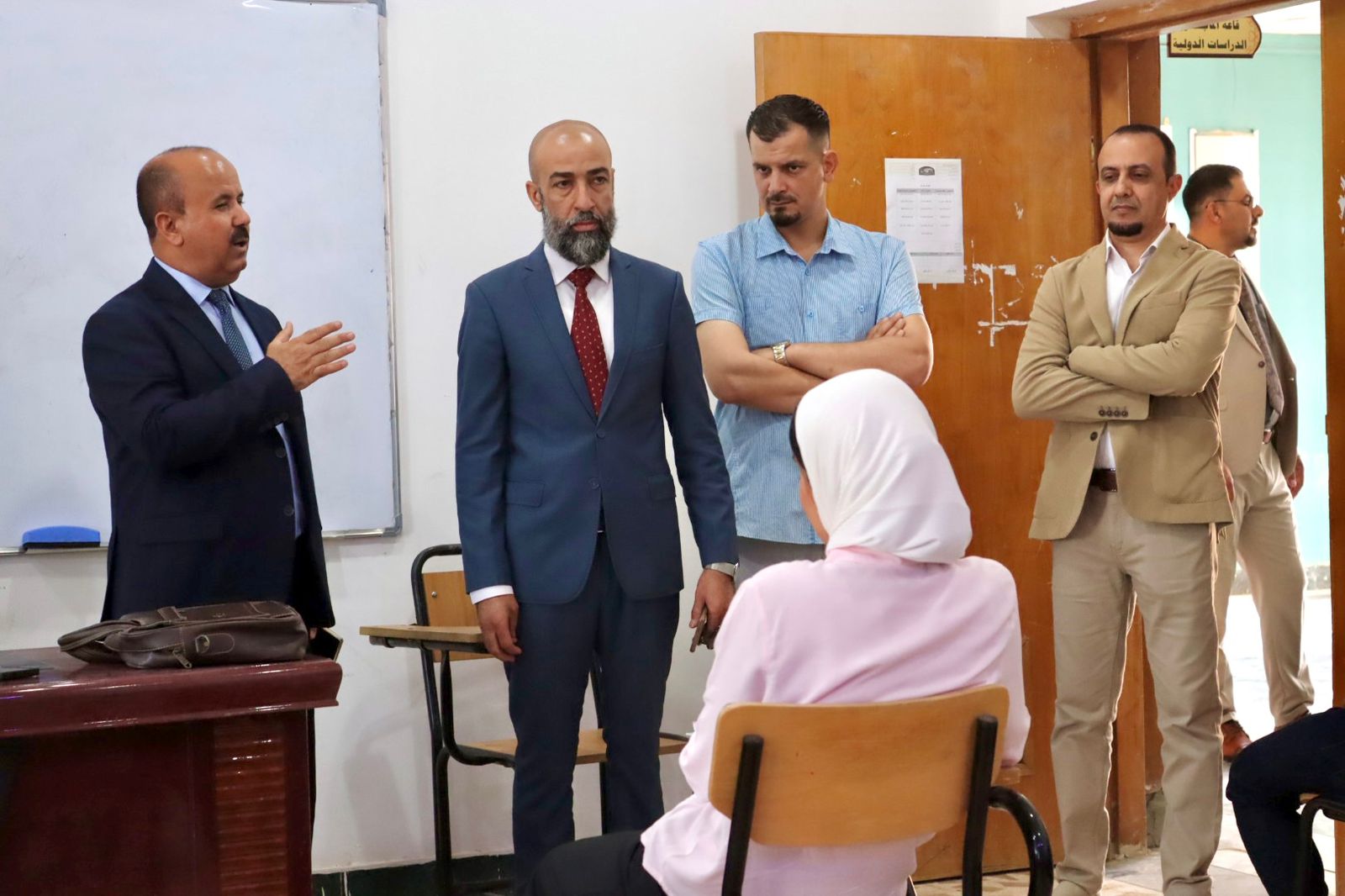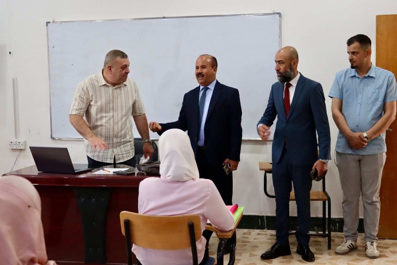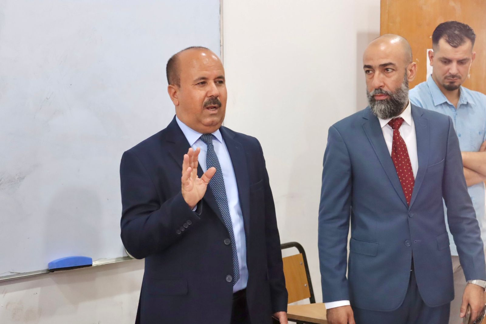 اثناء ذلك تفقد السيد عميد الكلية الأستاذ الدكتور قاسم علوان سعيد القاعات الدراسية للدراسات العليا في الكلية وذلك للترحيب بالطلبة متمنيا لهم عاما دراسيا حافلا بالنجاح والتوفيق مؤكدا على ضرورة الالتزام بالمحاضرات وعدم تجاوز نسبة الغياب وبذل الجهود لتحقيق النجاح..
