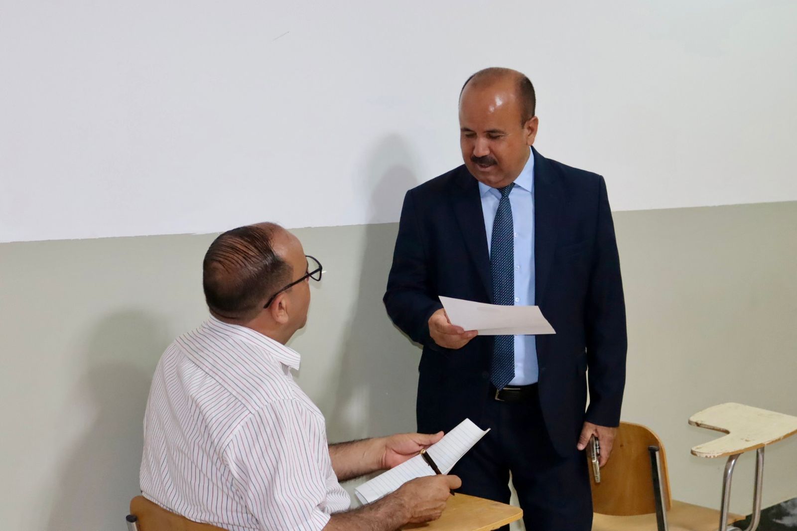 من جانبه أثنى السيد العميد على عمل اللجنة الامتحانية في الكلية والسادة المراقبين وعلى التزام الطلبة بالتعليمات والضوابط الامتحانية كما حثهم على تقديم المزيد من الجهود لتحقيق النجاح.