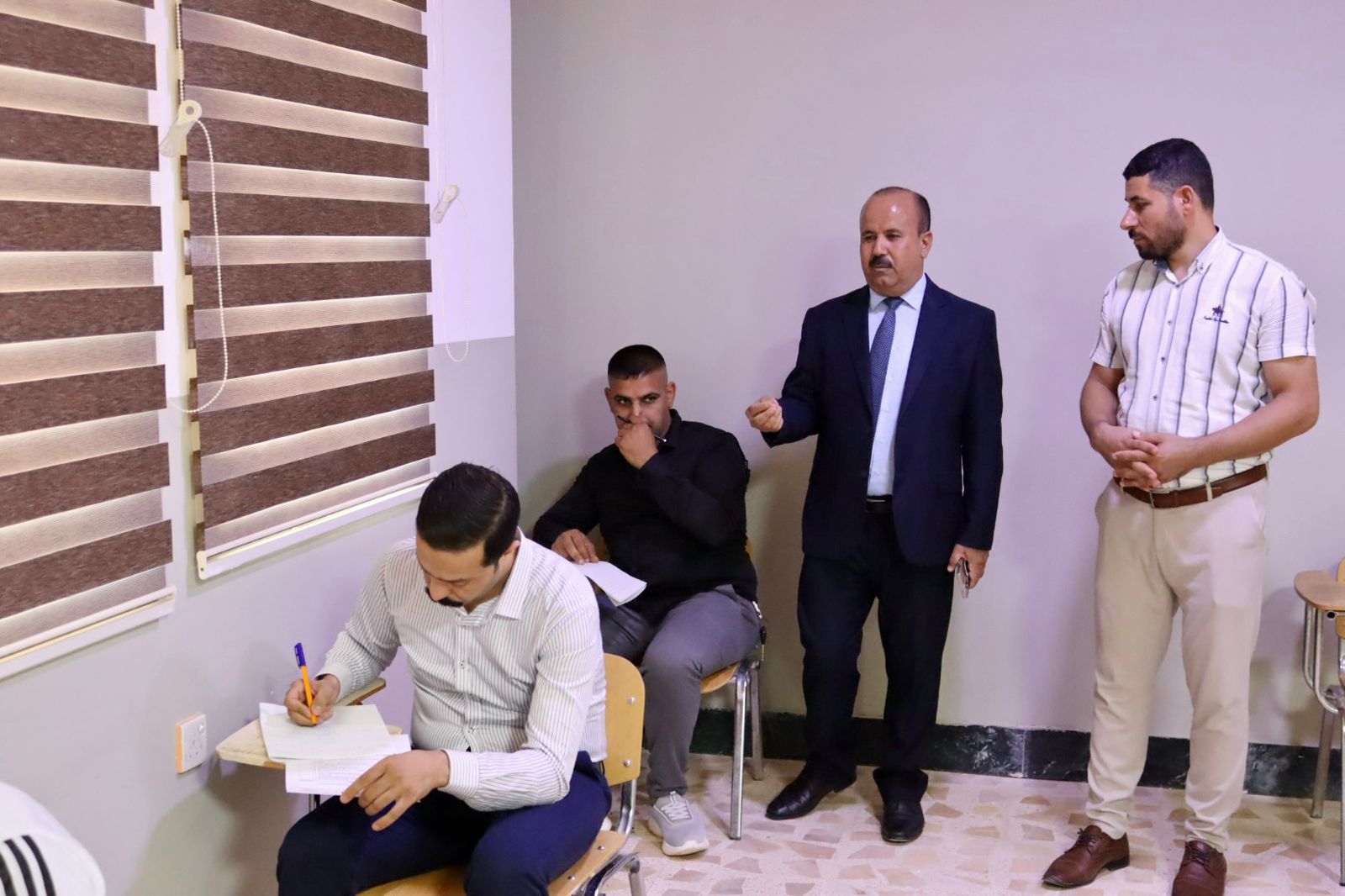 بدء طلبة كليتنا امتحانات الدور الثاني للدراسة الأولية والعليا الماجستير والدكتوراه خلال ذلك تفقد الأستاذ الدكتور قاسم علوان سعيد عميد الكلية برفقة السادة معاوني العميد العلمي والاداري القاعات الامتحانية للوقوف على انسيابية وإجراءات الامتحانات اذ تم الاطلاع على الأسئلة الامتحانية والاستماع الى الطلبة.