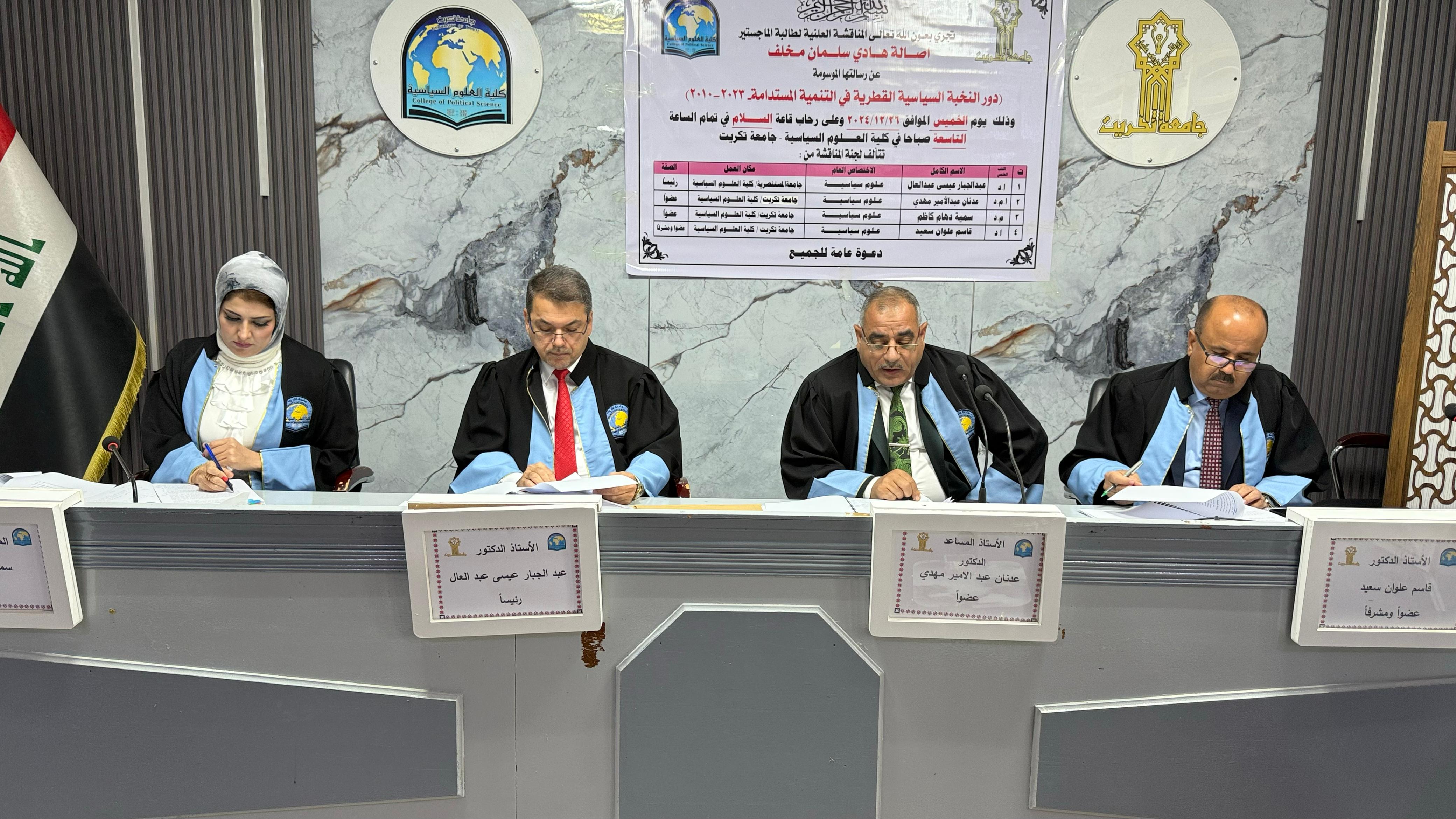 نوقشت في كلية العلوم السياسية رسالة الماجستير الموسومة بـ(دور النخبة السياسية القطرية في التنمية المستدامة من ٢٠١٠ - ٢٠٢٣) للطالبة (اصالة هادي سلطان).