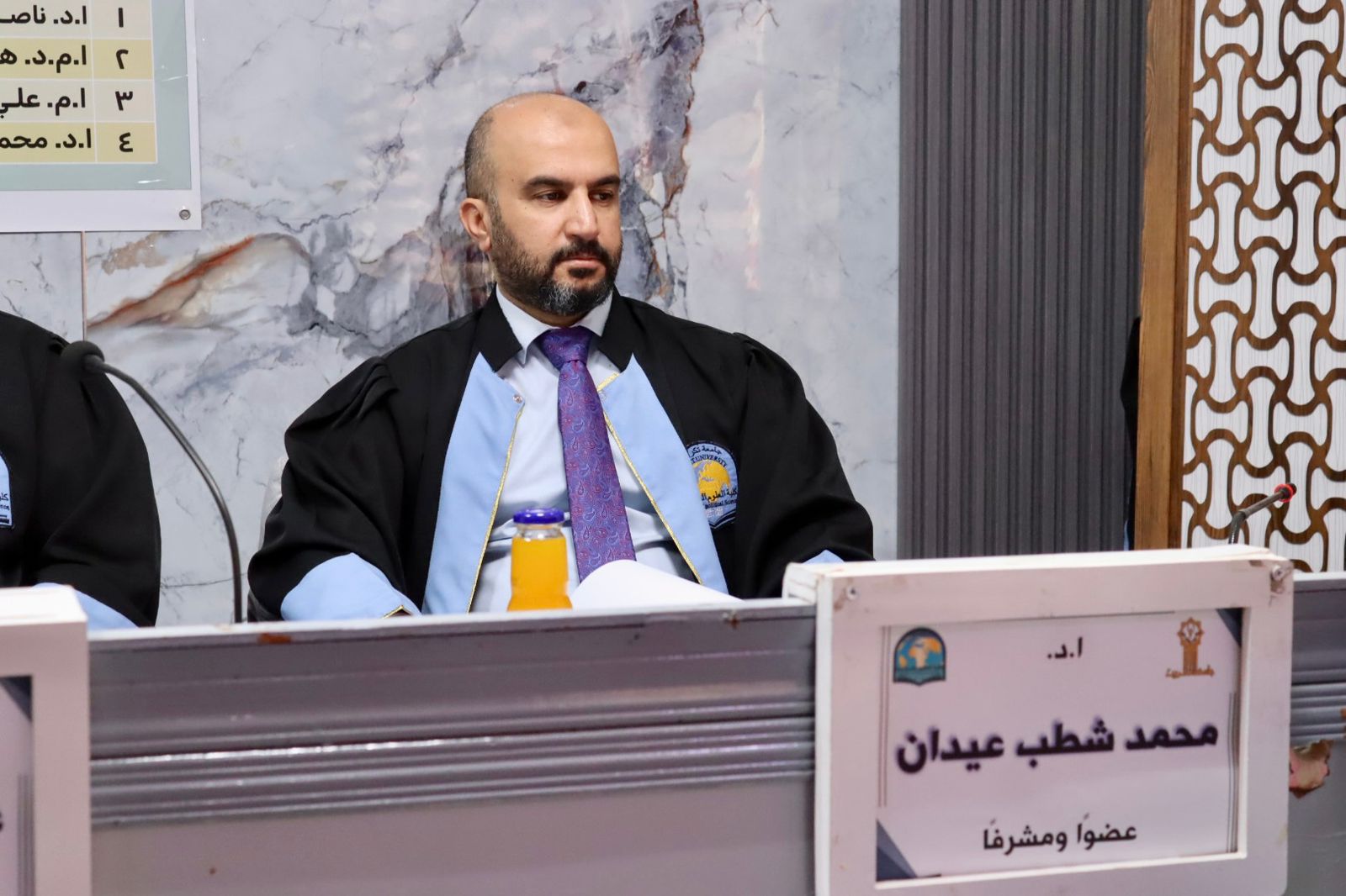 حضر المناقشة السيد مساعد رئيس الجامعة للشؤون العلمية أ.د. حسن حسين ابراهيم والسيد عميد الكلية أ.د. قاسم علوان سعيد والسادة معاوني العميد العلمي والاداري وعدد من تدريسيي الكلية وموظفيها وطلبتها.