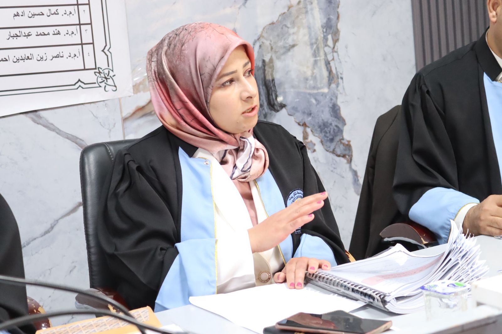 حضر المناقشة السيد عميد الكلية الأستاذ الدكتور قاسم علوان سعيد والسادة معاوني العميد العلمي والإداري وعدد من تدريسيي الكلية وموظفيها وطلبتها.