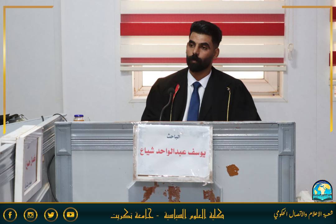 نوقشت في كلية العلوم السياسية رسالة الماجستير الموسومة بـ(الاستثمار في رأس المال البشري وأثره على بناء الدولة: دراسة حالة العراق 2010-2024) للطالب يوسف عبدالواحد شياع على قاعة السلام اليوم الاربعاء الموافق 20/8/2025.