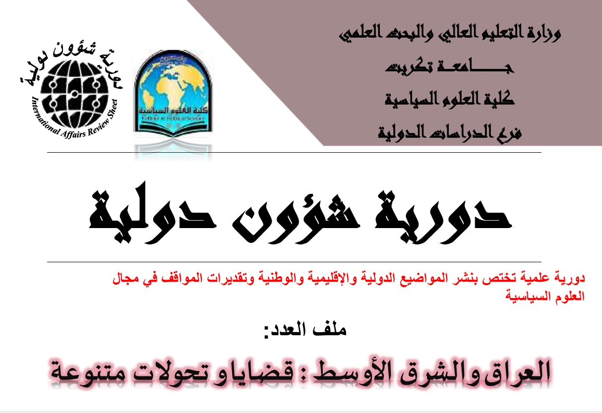 بتوجية من السيد عميد كلية العلوم السياسية ا.د قاسم علوان سعيدالمحترم قام عدد من الباحثين والمختصين في كليتنا والجامعات والوزارات العراقية فرع الدراسات الدولية في كليتنا باصدار نتاجاً علمياً جديداً تمثل ب (دورية شؤون دولية) بعددها الاول لشهر تشرين الاول 2024 ، وتضمن هذا العدد مجموعة مقالات علمية تخص الشأن العراقي والعربي والدولي.
