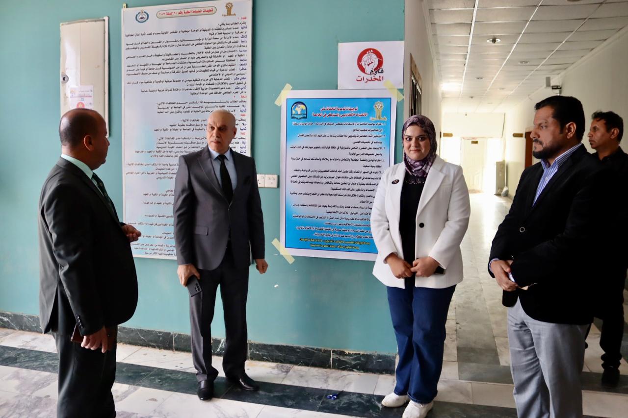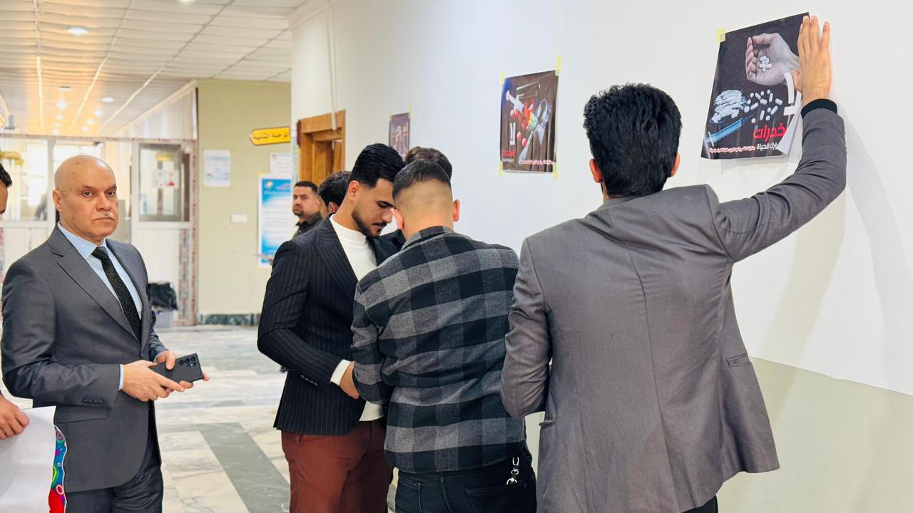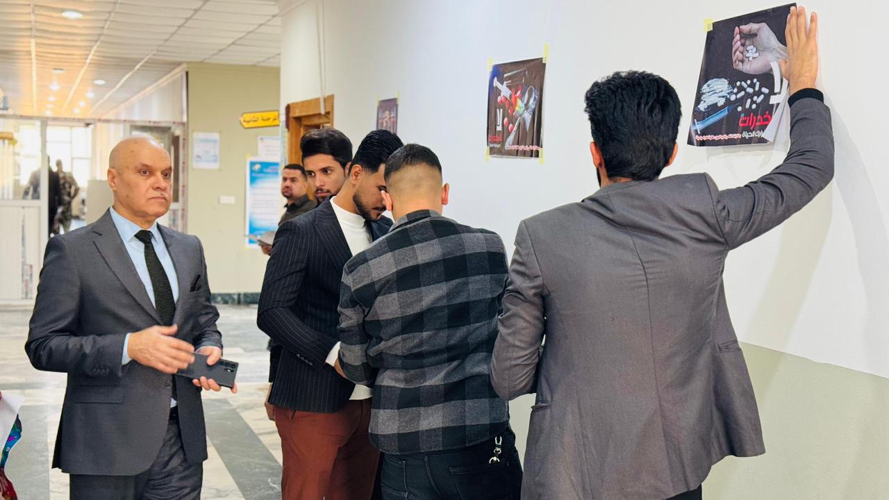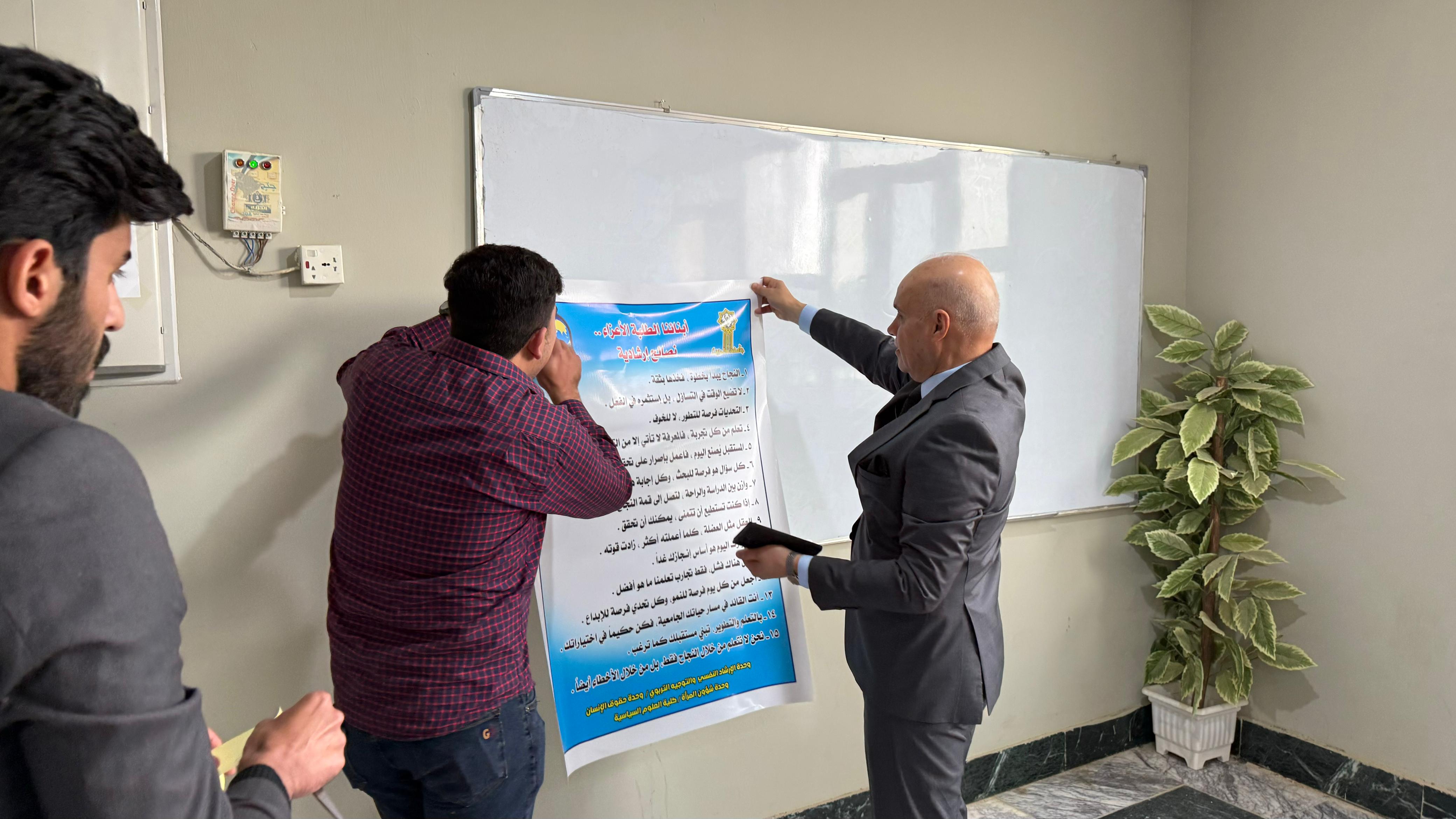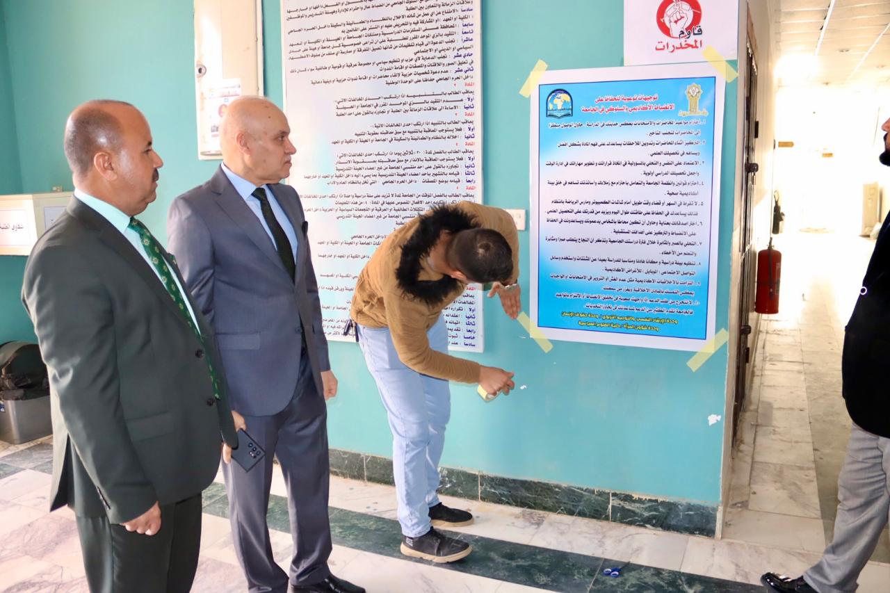 بناءً على توجيهات وزارة التعليم العالي والبحث العلمي وحرصها على ابناءها الطلبة بإقامة أسبوع للإرشاد النفسي والتوجيه التربوي وفي اليوم الاول في سياق برنامج الكلية المخصص لهذا الاسبوع وبرعاية السيد رئيس جامعة تكريت الاستاذ الدكتور وعد محمود رؤوف المحترم واشراف وحضور السيد عميد كلية العلوم السياسية الأستاذ الدكتور قاسم علوان سعيد المحترم والسادة المعاون الإداري دكتور حمادي حسن العطية والمعاون العلمي في الكلية الدكتور حسام كصاي حسين اقامت وحدة الارشاد النفسي والتوجيه التربوي في الكلية برئاسة الدكتور عباس فاضل عطوان وبمشاركة عدد من طلبة الكلية بنشر بوسترات وملصقات جدارية توعوية تضمنت ثلاثة محاور أساسية الأول المخدرات واضرارها وطرق الوقاية منها والمحور الثاني تضمن الابتزاز الالكتروني وكيفية التصدي له والمحور الثالث تناول موضوع الانضباط والسلوك الجامعي المثالي للطالب في الجامعة.