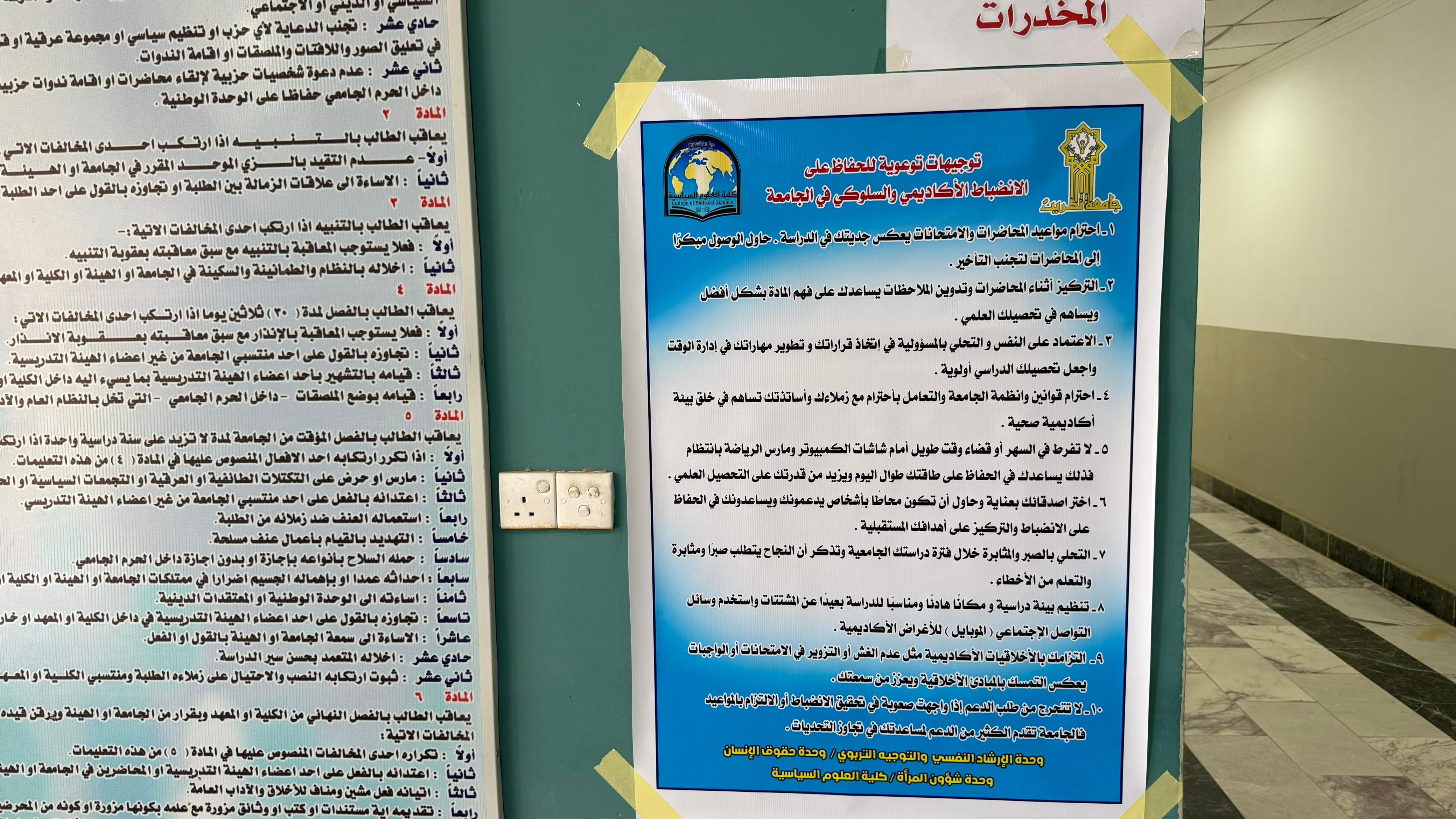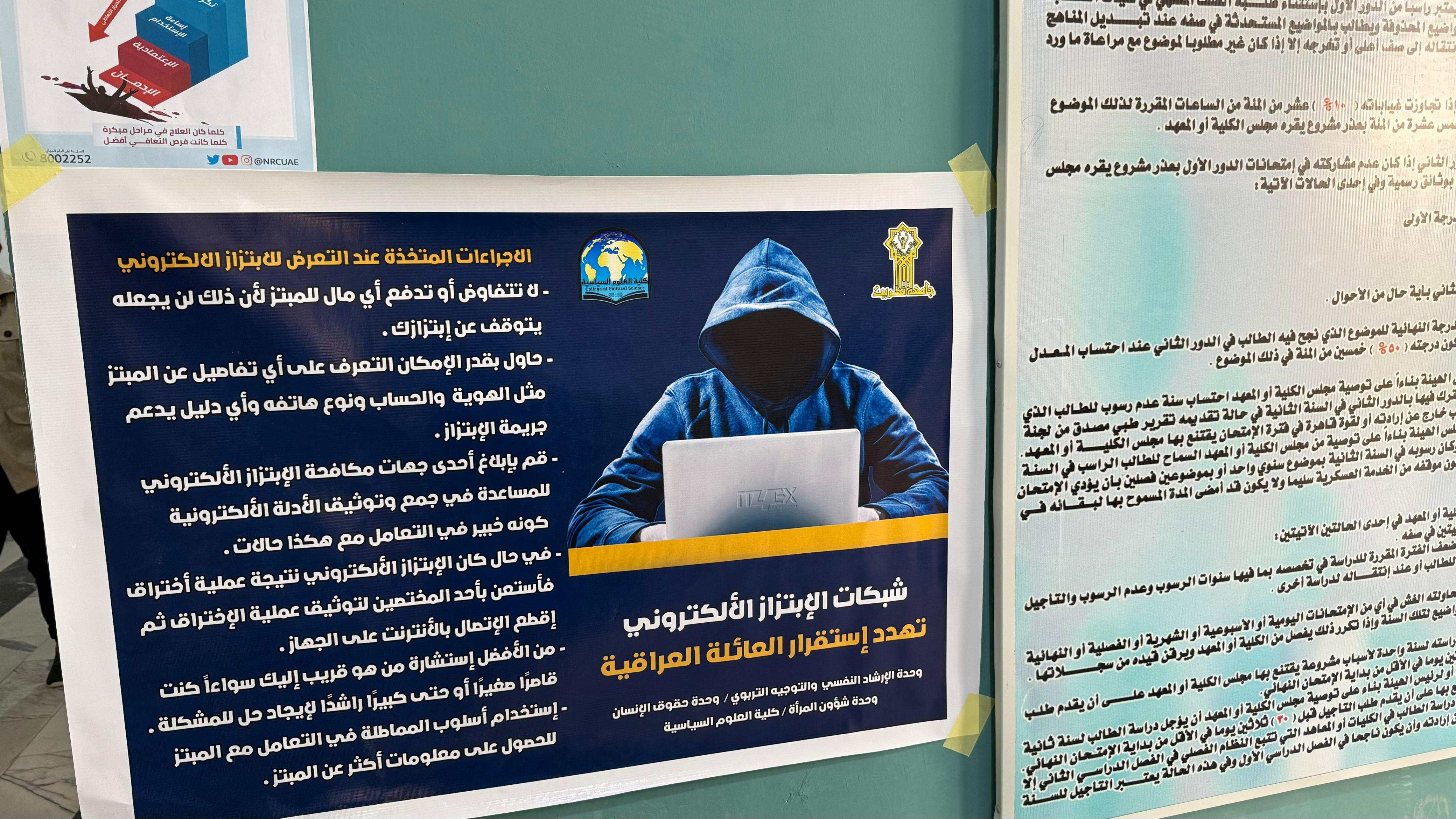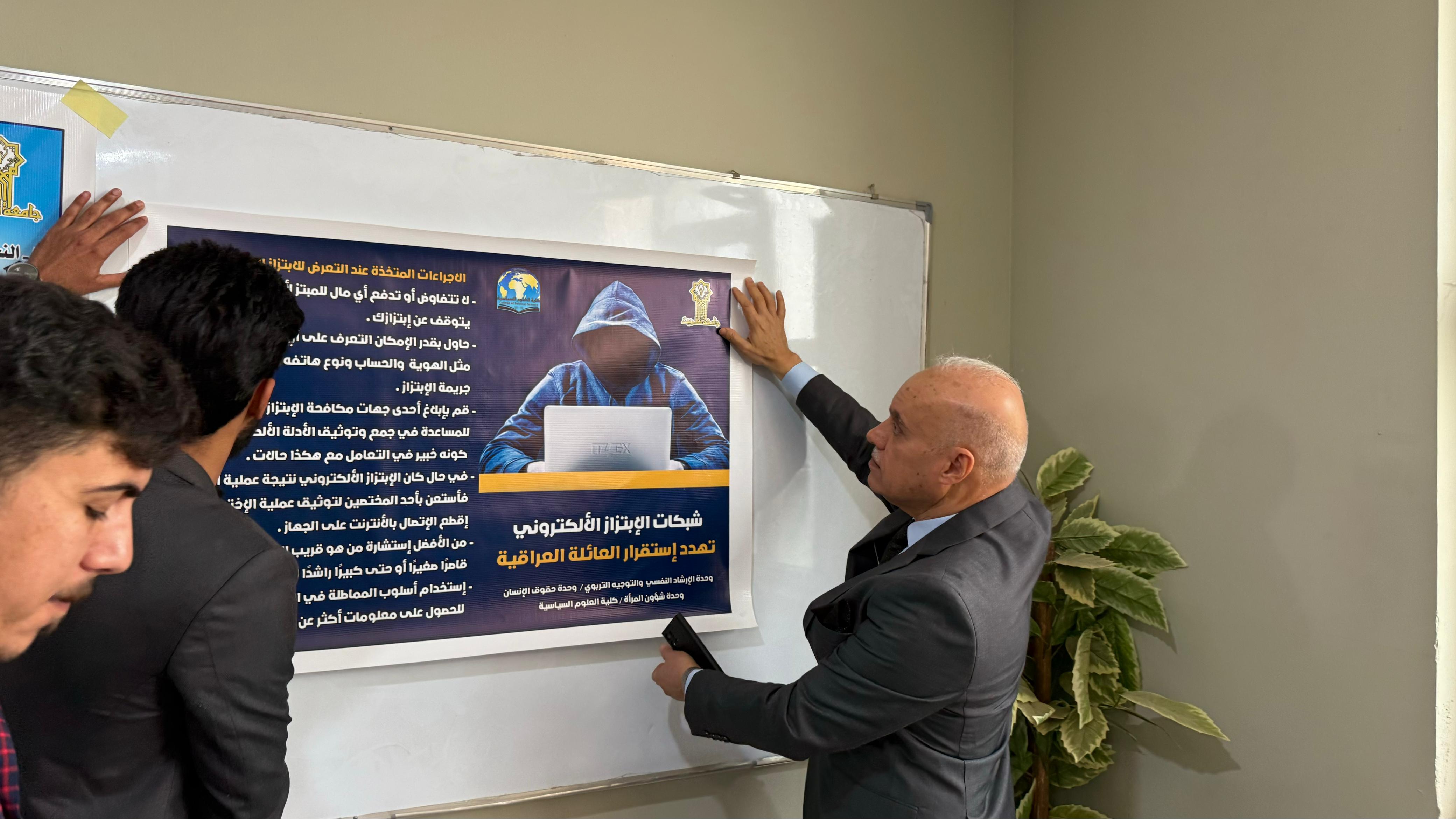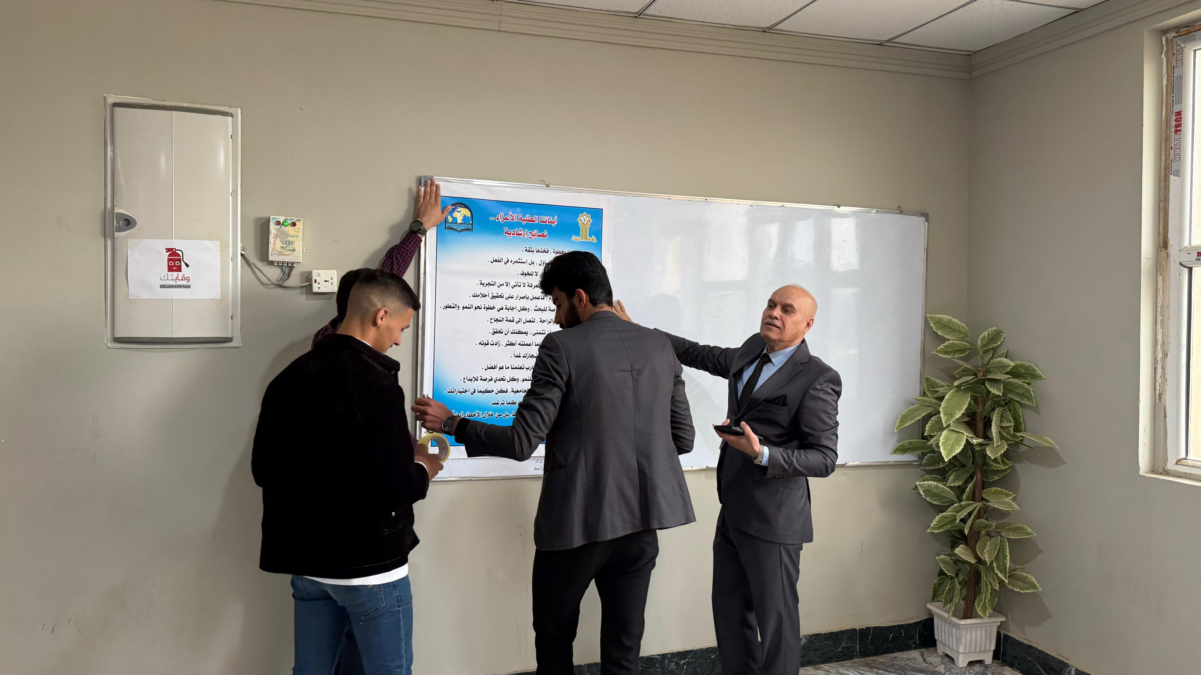 بناءً على توجيهات وزارة التعليم العالي والبحث العلمي وحرصها على ابناءها الطلبة بإقامة أسبوع للإرشاد النفسي والتوجيه التربوي وفي اليوم الاول في سياق برنامج الكلية المخصص لهذا الاسبوع وبرعاية السيد رئيس جامعة تكريت الاستاذ الدكتور وعد محمود رؤوف المحترم واشراف وحضور السيد عميد كلية العلوم السياسية الأستاذ الدكتور قاسم علوان سعيد المحترم والسادة المعاون الإداري دكتور حمادي حسن العطية والمعاون العلمي في الكلية الدكتور حسام كصاي حسين اقامت وحدة الارشاد النفسي والتوجيه التربوي في الكلية برئاسة الدكتور عباس فاضل عطوان وبمشاركة عدد من طلبة الكلية بنشر بوسترات وملصقات جدارية توعوية تضمنت ثلاثة محاور أساسية الأول المخدرات واضرارها وطرق الوقاية منها والمحور الثاني تضمن الابتزاز الالكتروني وكيفية التصدي له والمحور الثالث تناول موضوع الانضباط والسلوك الجامعي المثالي للطالب في الجامعة.