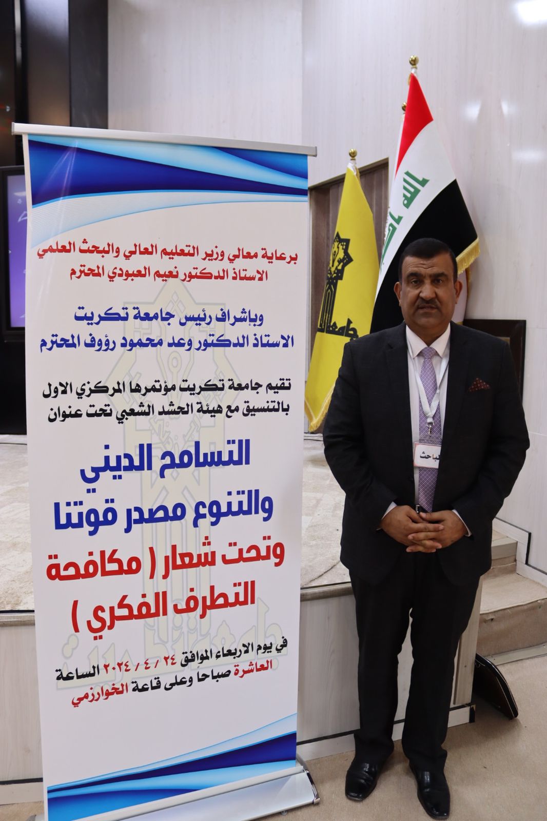 شارك السيد عميد الكلية الأستاذ الدكتور قاسم علوان سعيد وعدد من تدريسيي الكلية في فعاليات المؤتمر المركزي الأول لجامعة تكريت الذي اقيم تحت شعار (مكافحة التطرف الفكري) من خلال مشاركتهم في لجان مناقشة البحوث المقدمة للمؤتمر بالإضافة الى مشاركتهم في عدد من البحوث.