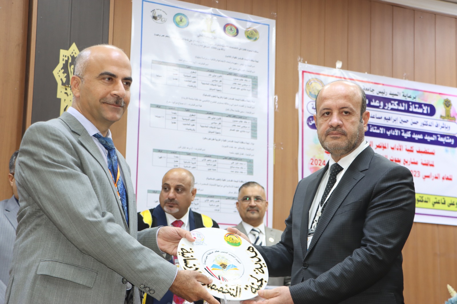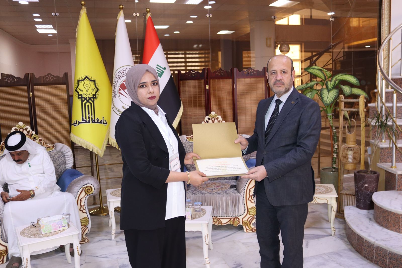 وفي نهاية مراسيم المؤتمر تم تكريم الباحثين والمشاركين في انجاح المؤتمر من قبل السيد رئيس الجامعة المحترم بدروع وشهادات تقديرية وكان لباحثي كليتنا نصيب كبير منها.