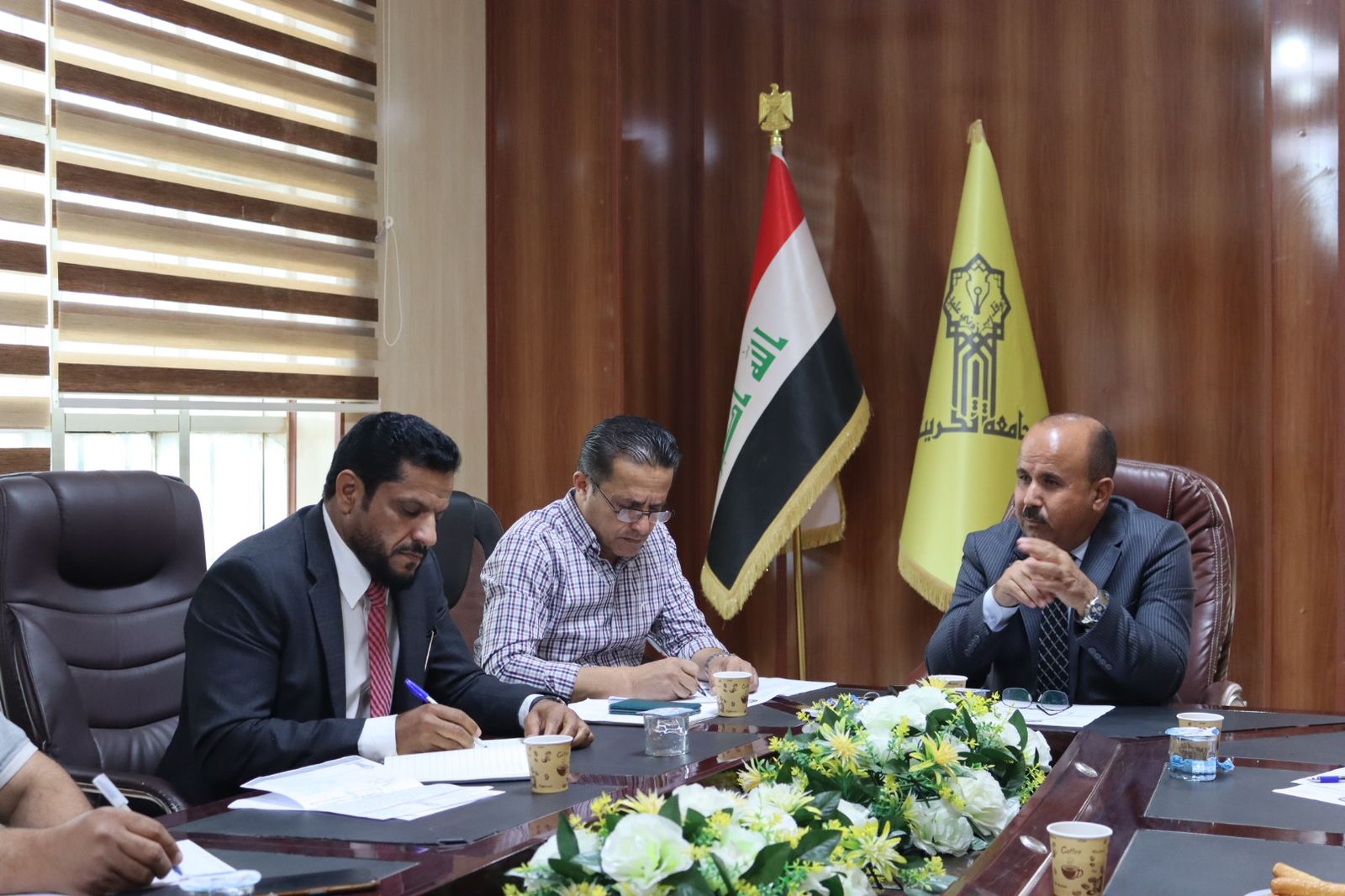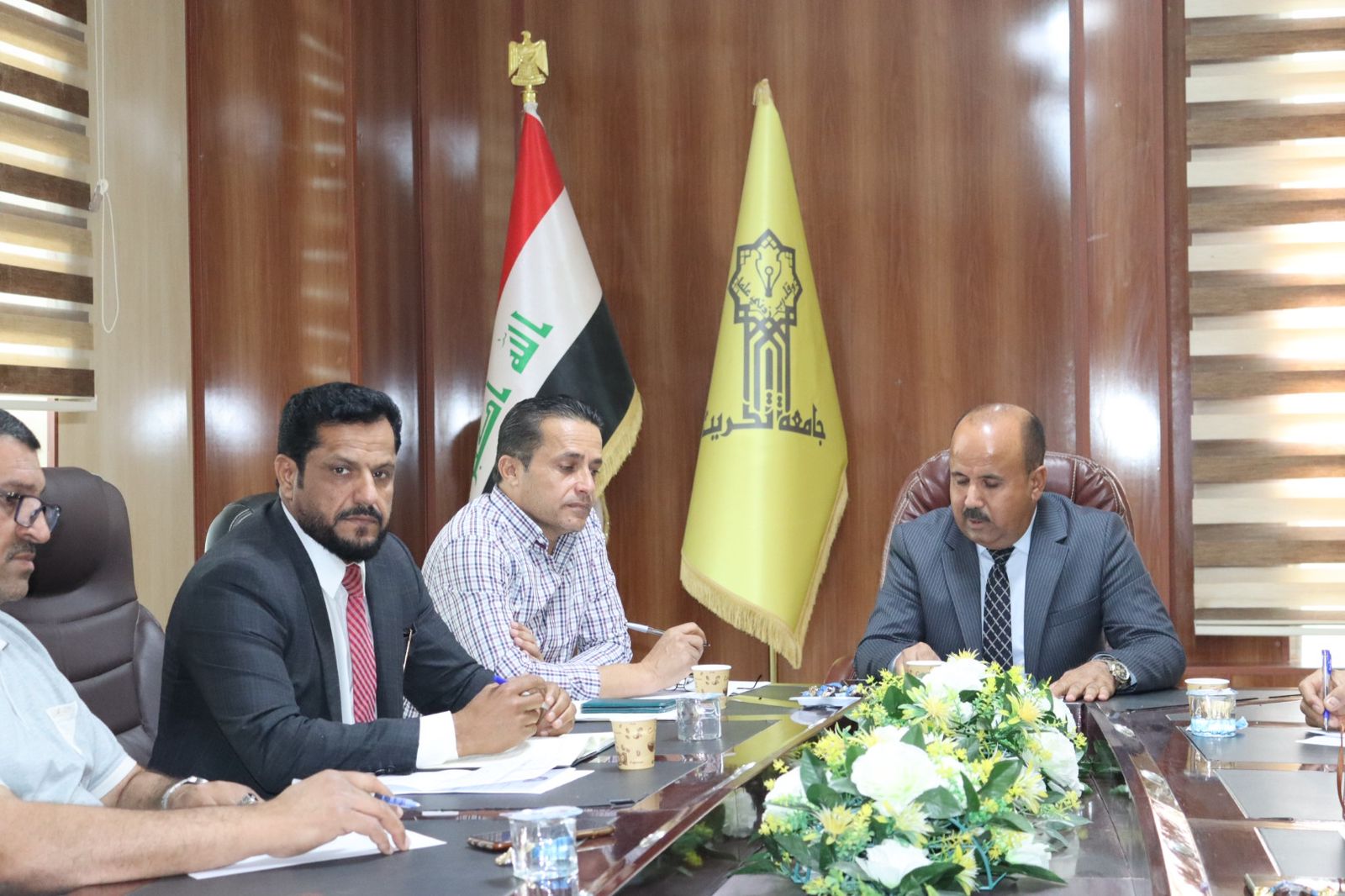 تناول الاجتماع مناقشة عدد من الجوانب العلمية والإدارية الخاصة بالمسيرة التعليمية من أجل تذليل الصعاب أمام طلبتنا ووفق التعليمات الصادرة من رئاسة الجامعة.. وتم التأكيد ع توجيه اللجنة الامتحانية بتهيئة لاداء امتحانات الدور الأول للدراسات الأولية والعليا كما تم مناقشة موضوع ترقية علمية لمرتبة استاذية لاحد التدريسين ومرتبة استاذ مساعد لتدريسية بكليتنا ومواضيع أخرى تتعلق بالجوانب العلمية والإدارية.
