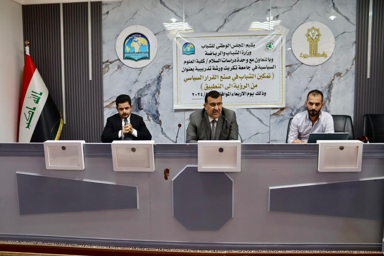 بهدف تعزيز دور الشباب العراقي في الحياة السياسية وتمكينهم من التأثير على القرارات والسياسات العامة اقامت كلية العلوم السياسية وحدة دراسات السلام وبالتعاون مع المجلس الوطني للشباب التابع لوزارة الشباب والرياضة العراقية ورشة عمل بعنوان "تمكين الشباب العراقي في صنع القرار السياسي" يوم الاربعاء الموافق ٢٠٢٤/٩/١٨.