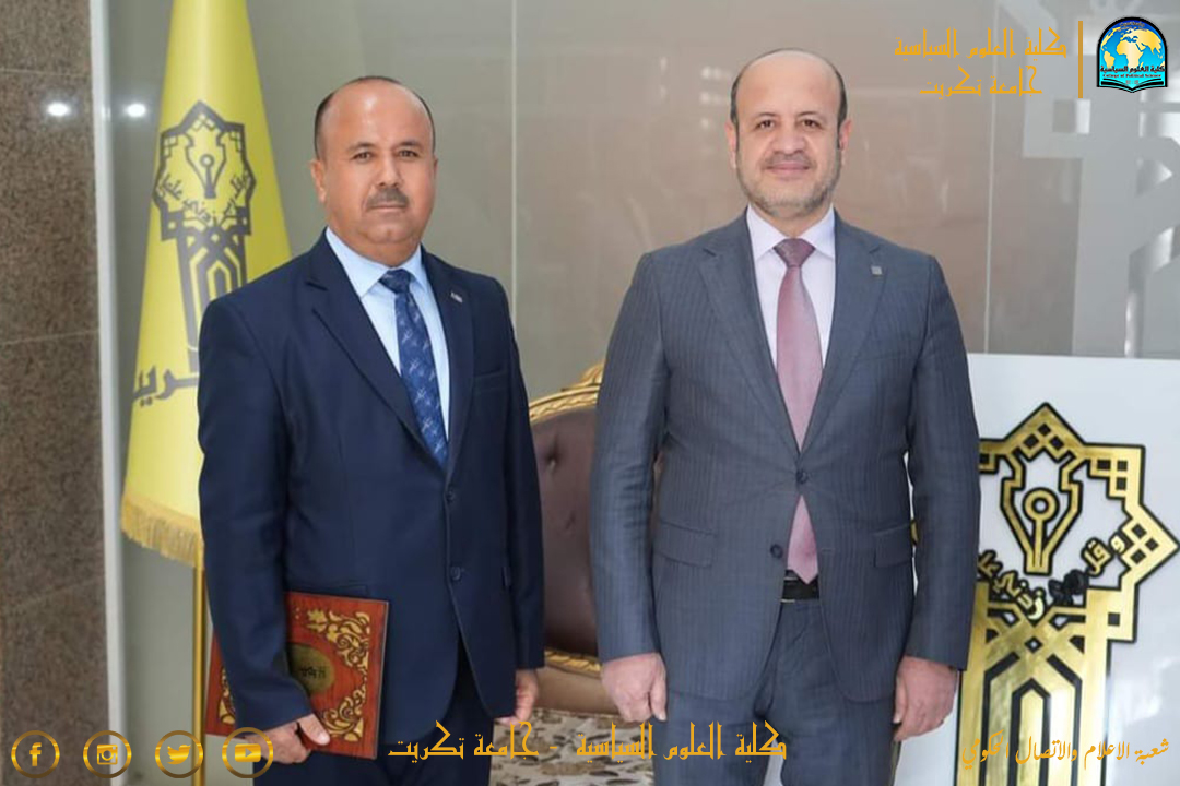 يتقدم كادر كلية العلوم السياسية جامعة تكريت متمثلاً بالكادر التدريسي والوظيفي بأحر التهاني و التبريكات للاستاذ الدكتور قاسم علوان سعيد بمناسبة تثبيته عميداً لكلية العلوم السياسية بالأصالة متمنين له التوفيق والنجاح الدائم لخدمة المسيرة العلمية في كليتنا وجامعتنا وبلدنا العزيز.