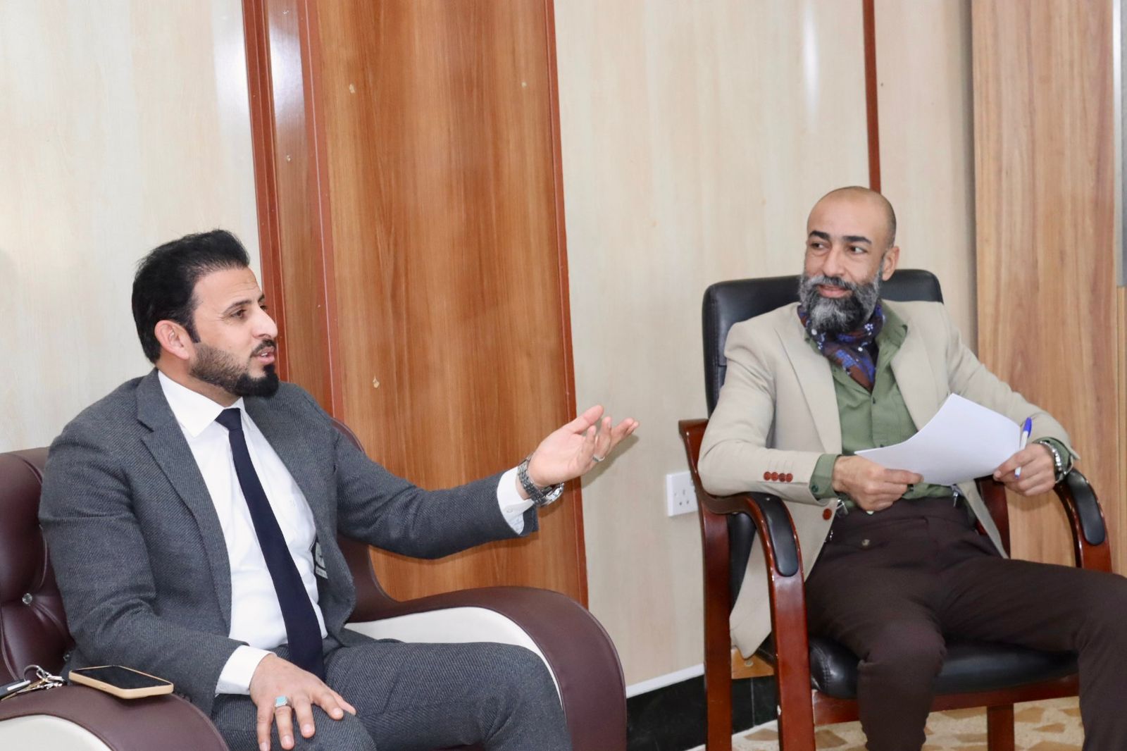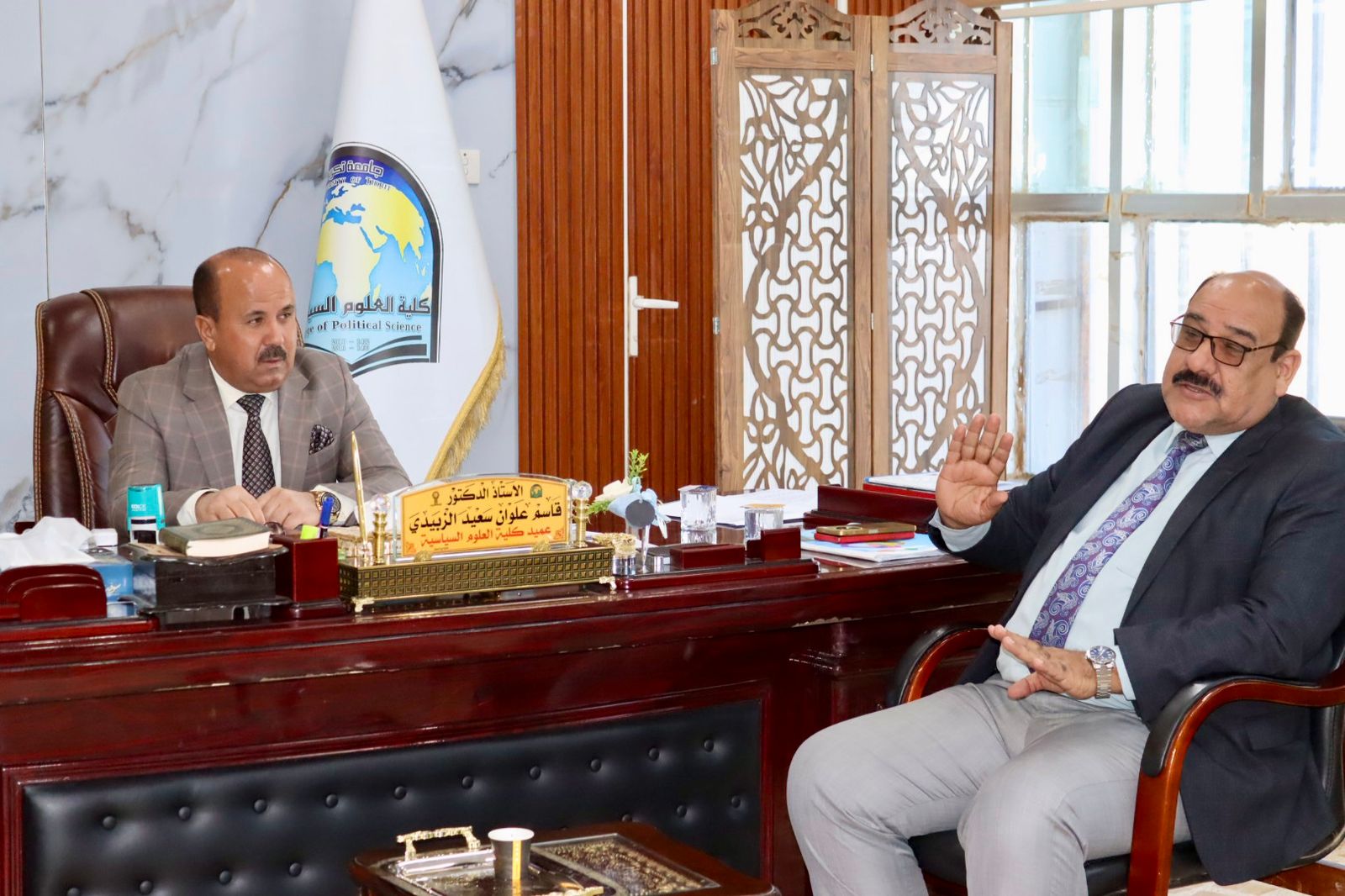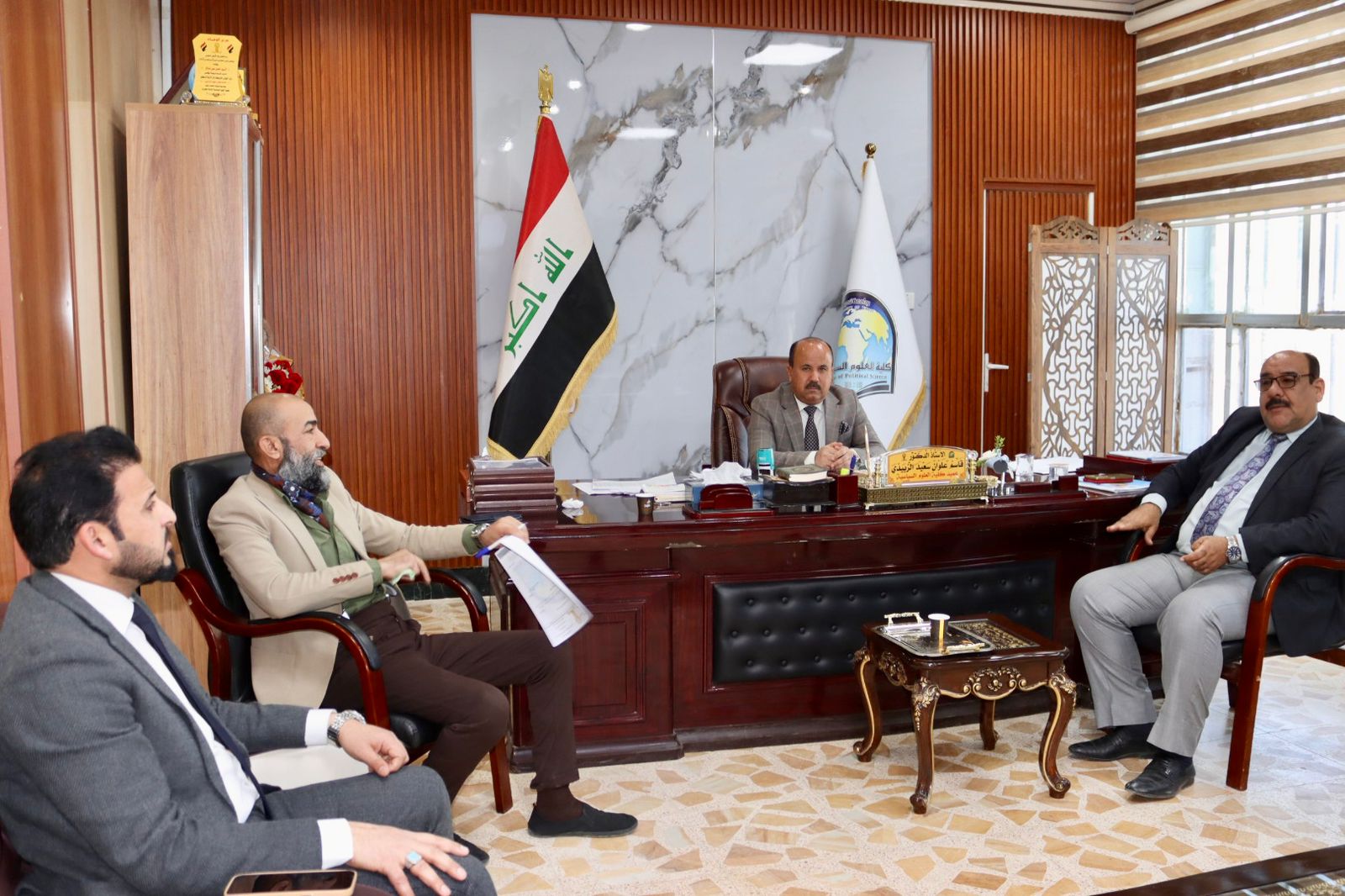 استقبل الأستاذ الدكتور قاسم علوان سعيد عميد كلية العلوم السياسية في مكتبه اليوم الثلاثاء كل من الاستاذ الدكتور مثنى مشعان الزبيدي معاون عميد كلية التربية للعلوم الإنسانية لشؤون الطلبة والاستاذ المساعد الدكتور سالم خلف فهد معاون عميد كلية التربية البدنية وعلوم الرياضية للشؤون الإدارية.