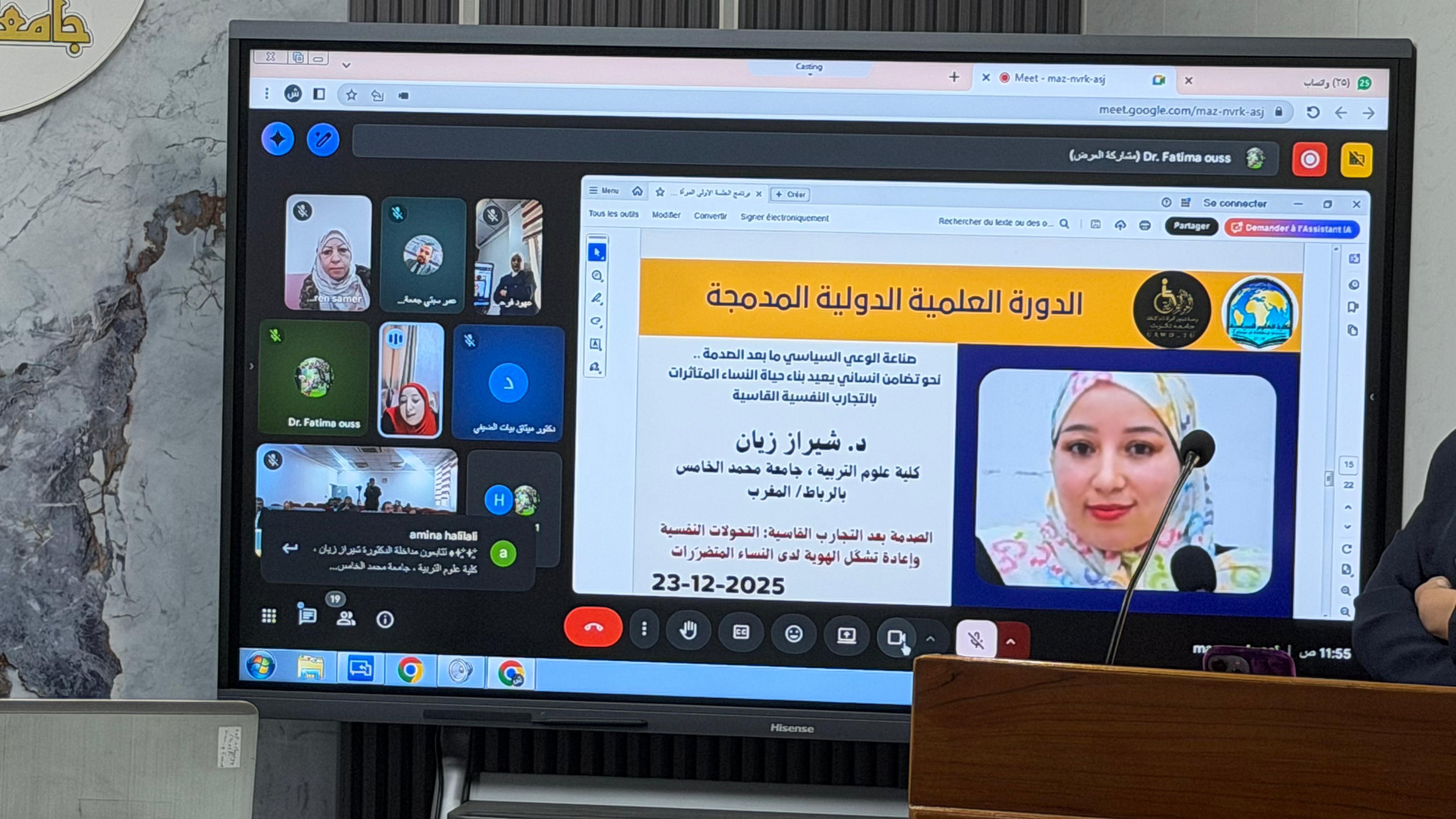 التحولات النفسية: قدمت د. شيراز زيان (جامعة محمد الخامس - المغرب) تحليلاً حول إعادة تشكل هوية النساء المتضررات بعد التجارب القاسية.