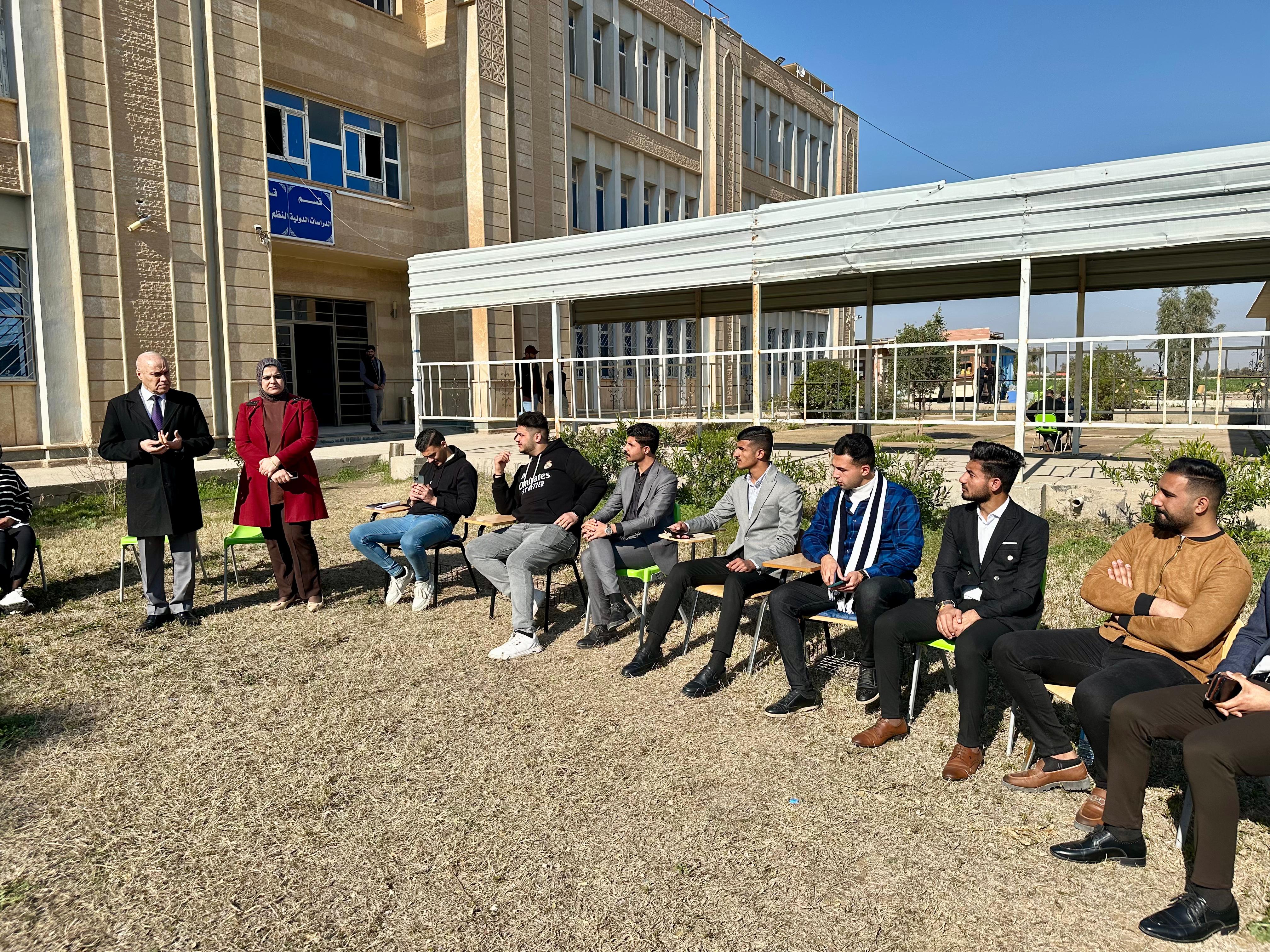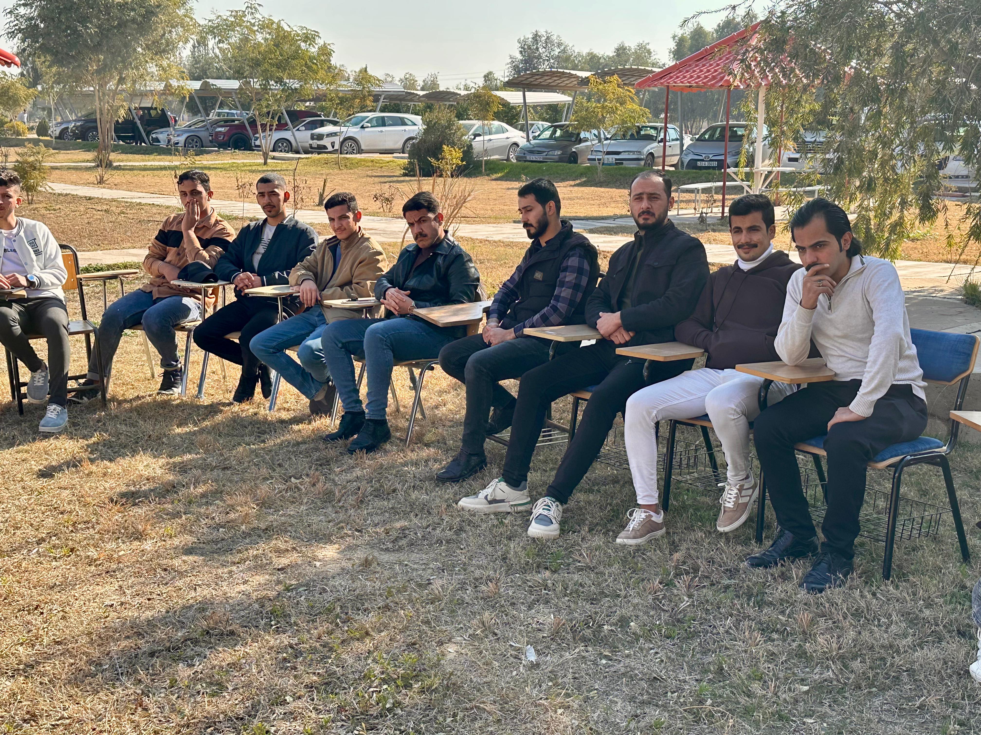 باشراف الاستاذ الدكتور قاسم علوان سعيد عميد الكلية تم اقامة محاضرة ارشاد واستماع لطلبة الكلية وللمراحل الاربعة اليوم الثلاثاء الموافق 11/2/2025 على حدائق الكلية.
