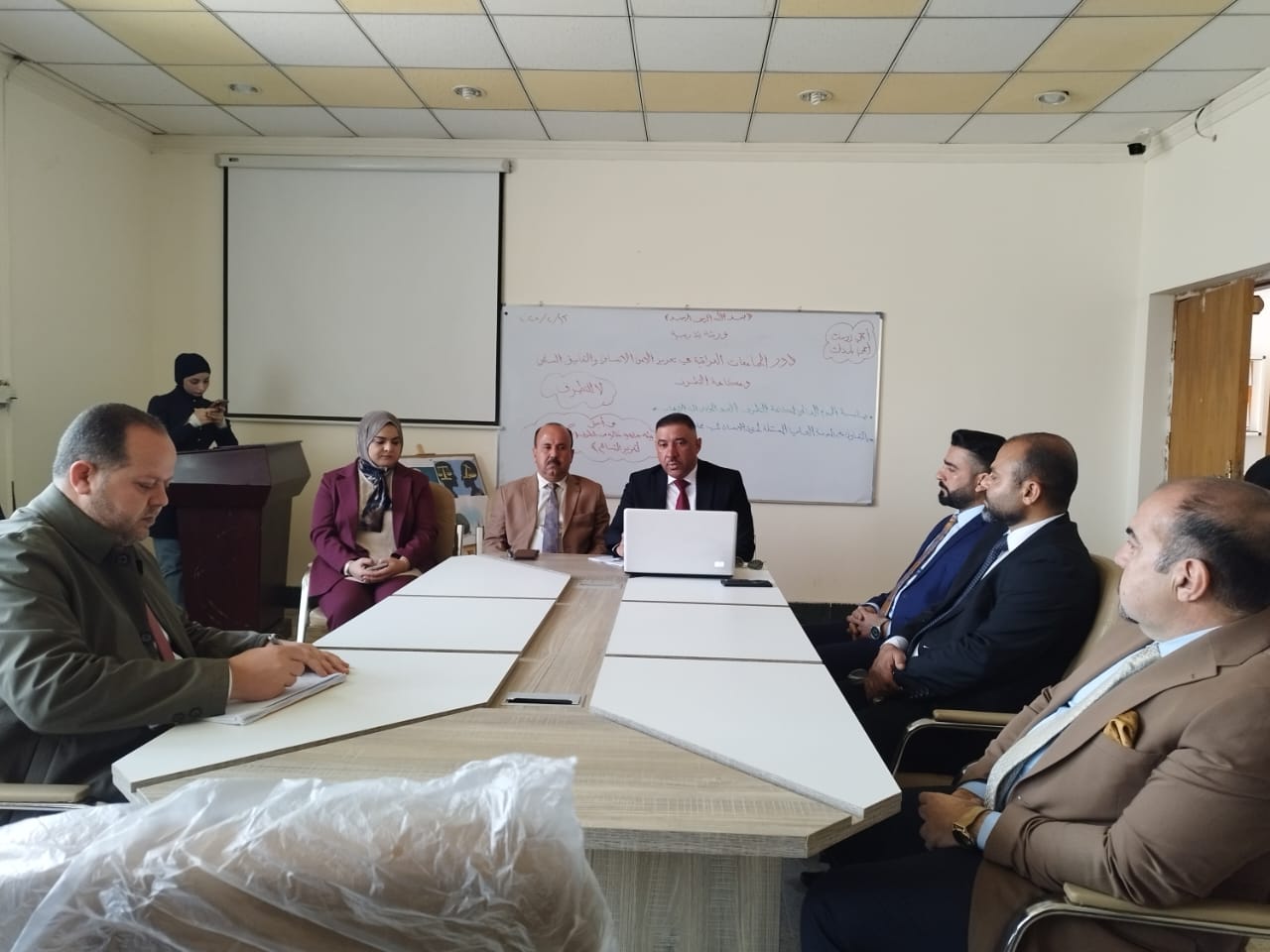 بمناسبة اليوم العالمي للحد من التطرف وبتوجية من السيد رئيس جامعة تكريت الاستاذ الدكتور وعد محمود رؤوف المحترم وبرعاية الاستاذ الدكتور قاسم علوان سعيد عميد كلية العلوم السياسية المحترم وانطلاقا من مبدأ خدمة المجتمع ومعالجته من الظواهر السلبية قامت وحدة حقوق الأنسان برئاسة الدكتورة حنين ابراهيم عبدالله وبالتعاون مع المفوضية العليا المستقلة لحقوق الأنسان في محافظة صلاح الدين والمتمثلة بالمستشار القانوني الاستاذ أدريس احمد خلف ورشة تدريبية اليوم الخميس ١٣/ ٢/ ٢٠٢٥ وعلى قاعة السلام في الكلية، تحت عنوان ( دور الجامعات في تعزيز الأمن الأنساني والتعايش السلمي ومكافحة التطرف).