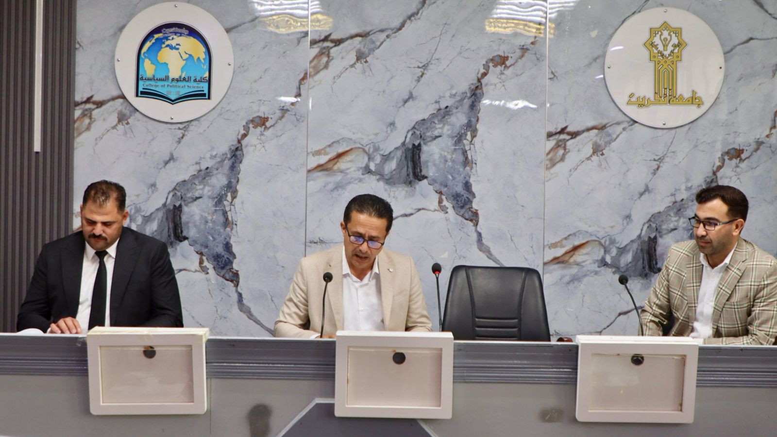 برعاية الاستاذ الدكتور وعد محمود رؤوف رئيس جامعة وباشراف الاستاذ الدكتور قاسم علوان سعيد عميد كلية العلوم السياسية اقامت الكلية وعلى بركة الله اليوم الثلاثاء 11/اذار/2025 مؤتمرها العلمي السادس عشر وعلى قاعة السلام لمناقشة بحوث تخرج طلبة المرحلة الرابعة في الكلية وبحضور أ.د. حسام كصاي حسين معاون العميد للشؤون العلمية و م.د. حمادي حسن عطية معاون العميد للشؤون الادارية, ورئيس فرع الدراسات الدولية ورئيس فرع النظم السياسية وتدريسيي الكلية.