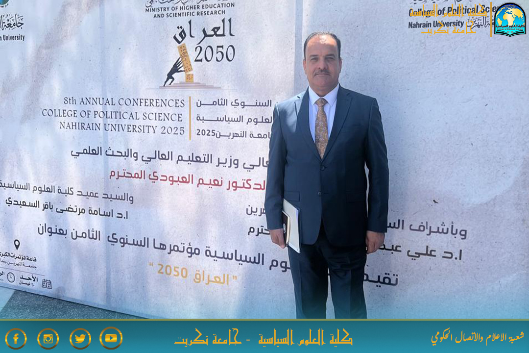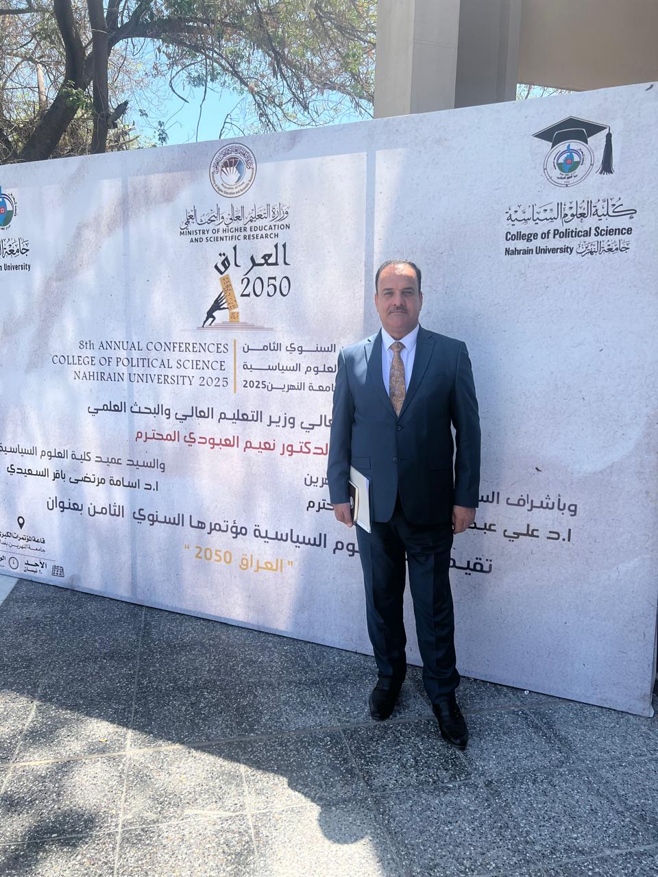 شارك التدريسي الأستاذ الدكتور حازم صباح احميد ببحث في مؤتمر كلية العلوم السياسية/جامعة النهرين السنوي الثامن والذي أقيم تحت عنوان "العراق 2050" اليوم الاحد الموافق 2025/4/20 وعلى رحاب قاعة المؤتمرات الكبرى في الجامعة.