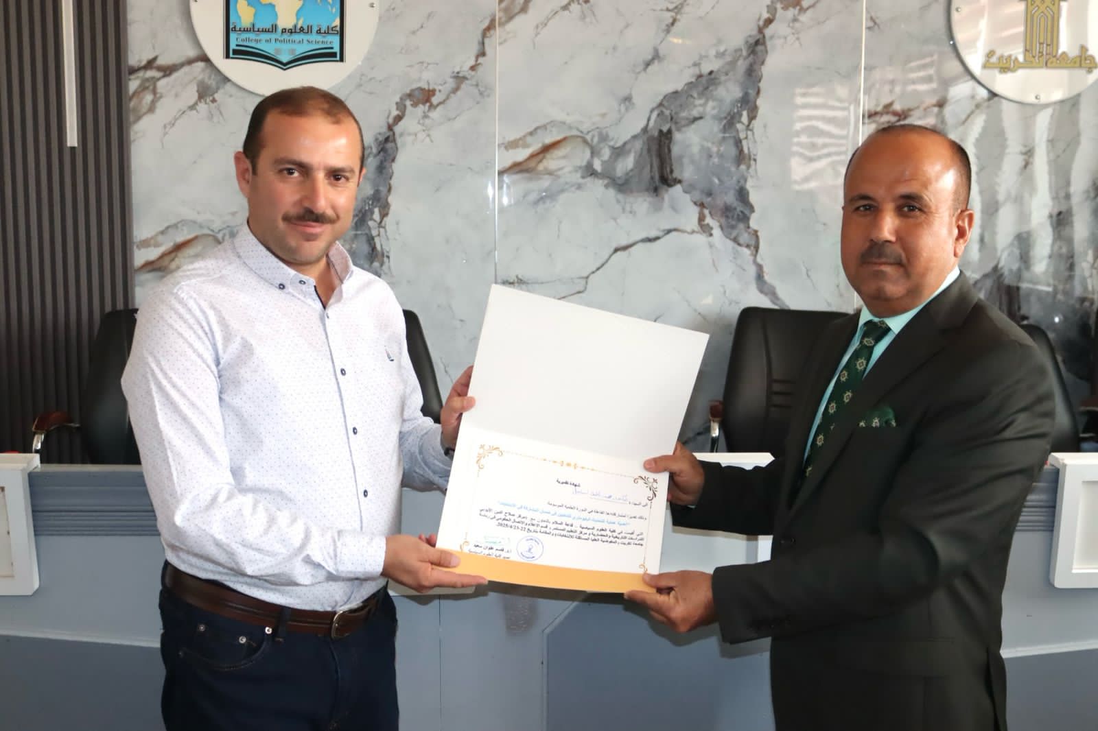برعاية الاستاذ الدكتور وعد محمود رؤوف رئيس جامعة تكريت المحترم وباشراف كل من أ.د. قاسم علوان سعيد عميد كلية العلوم السياسية المحترم و أ. م.د. سياف عبد حسين مدير مركز التعليم المستمر المحترم.