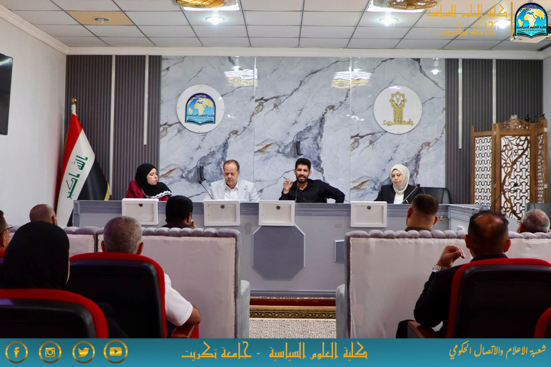 برعاية الاستاذ الدكتور وعد محمود رؤوف رئيس جامعة تكريت المحترم وبإشراف كل من أ.د. قاسم علوان سعيد عميد كلية العلوم السياسية المحترم و أ. م.د. سياف عبد حسين مدير مركز التعليم المستمر المحترم، اقامت كلية العلوم السياسية دورة علمية عن "نكث العهود والإرهاب الصهيوني: الجذور العقدية والتاريخية والتداعيات الاجتماعية والقانونية" يوم الاحد الموافق 27/4/2025 على رحاب قاعة السلام.