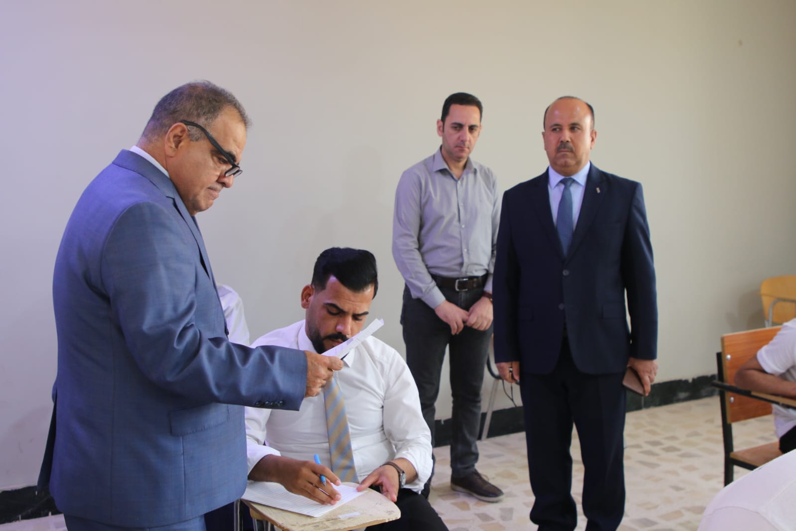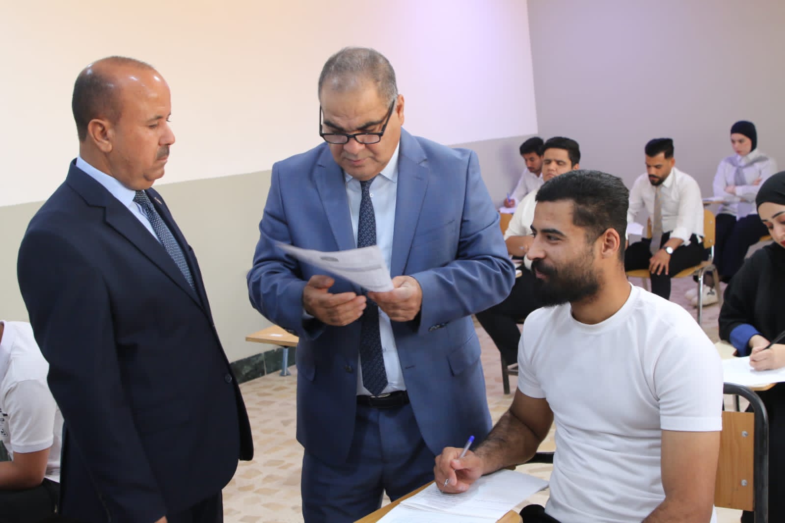 حيث تفقد القاعات الامتحانية للاطلاع على الإجراءات والاسئلة الامتحانية واللجنة الامتحانية، من جانبه اشاد السيد المساعد العلمي بالجهود التي تقدمها عمادة الكلية واللجان الامتحانية في تهيئة الظروف الملائمة للطلبة في أداء امتحاناتهم.