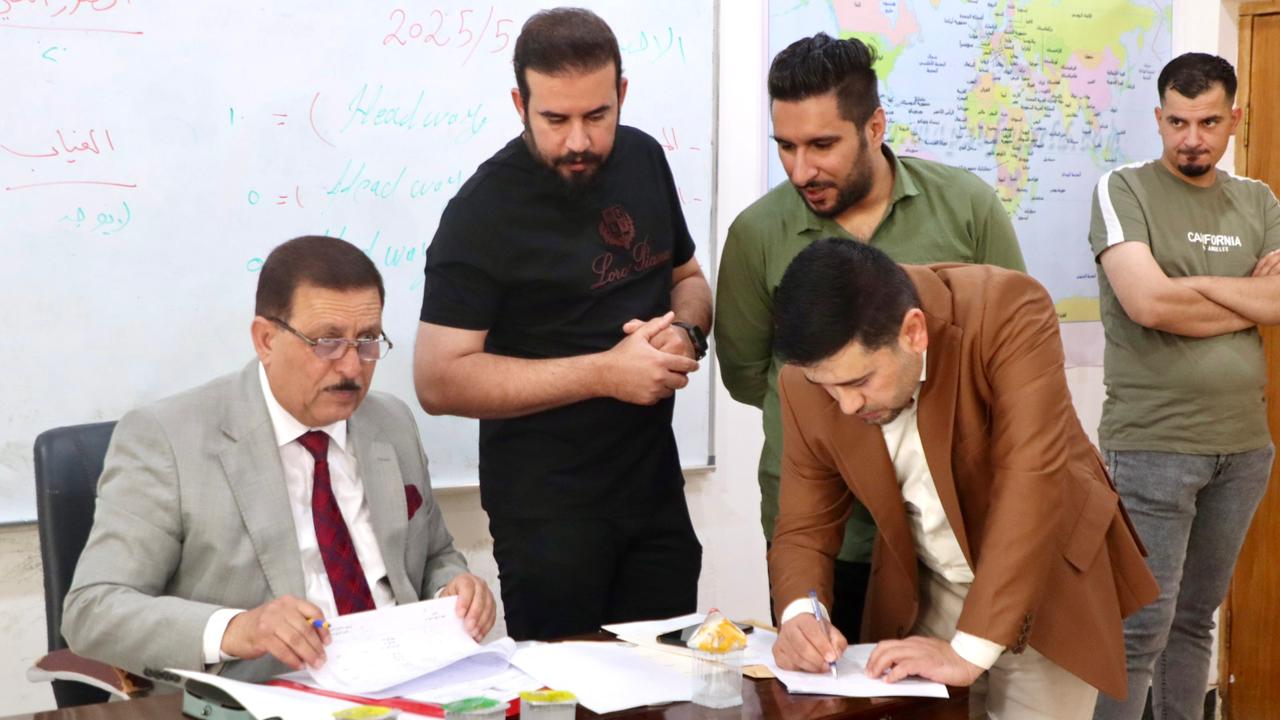 زارت كلية العلوم السياسية يوم الاحد الموافق 2025/5/18 اللجنة المركزية لمتابعة الامتحانات النهائية للعام الدراسي ٢٠٢٥/٢٠٢٤، أجرت اللجنة التي كان برفقتها السيد عميد الكلية الاستاذ الدكتور قاسم علوان سعيد والسيد معاون العميد للشؤون العلمية أ.د. حسام كصاي حسين والسيد المعاون الإداري م. د. حمادي حسن عطية جولة ميدانية للقاعات الامتحانية، وذلك للاطلاع على آلية سير الامتحانات في الكلية ونماذج الاسئلة ومدى تطابقها مع المناهج الدراسية وكافة المتطلبات الواجب توافرها.
