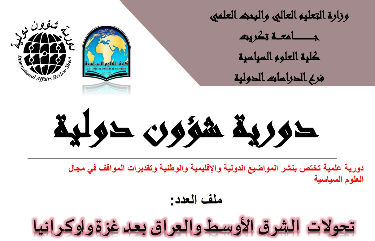 باشراف السيد عميد كلية العلوم السياسية ا.د قاسم علوان سعيد المحترم وتحت عنوان " تحولات الشرق الاوسط والعراق بعد غزة واوكرانيا" قام فرع الدراسات الدولية في الكلية باصدار العدد الخامس من دورية شؤون دولية لشهر شباط 2025.