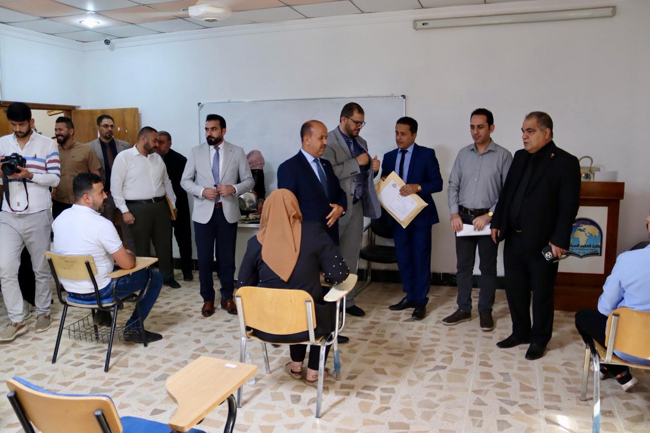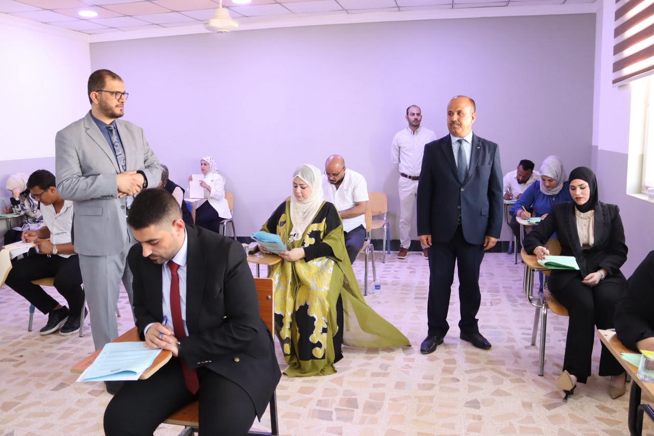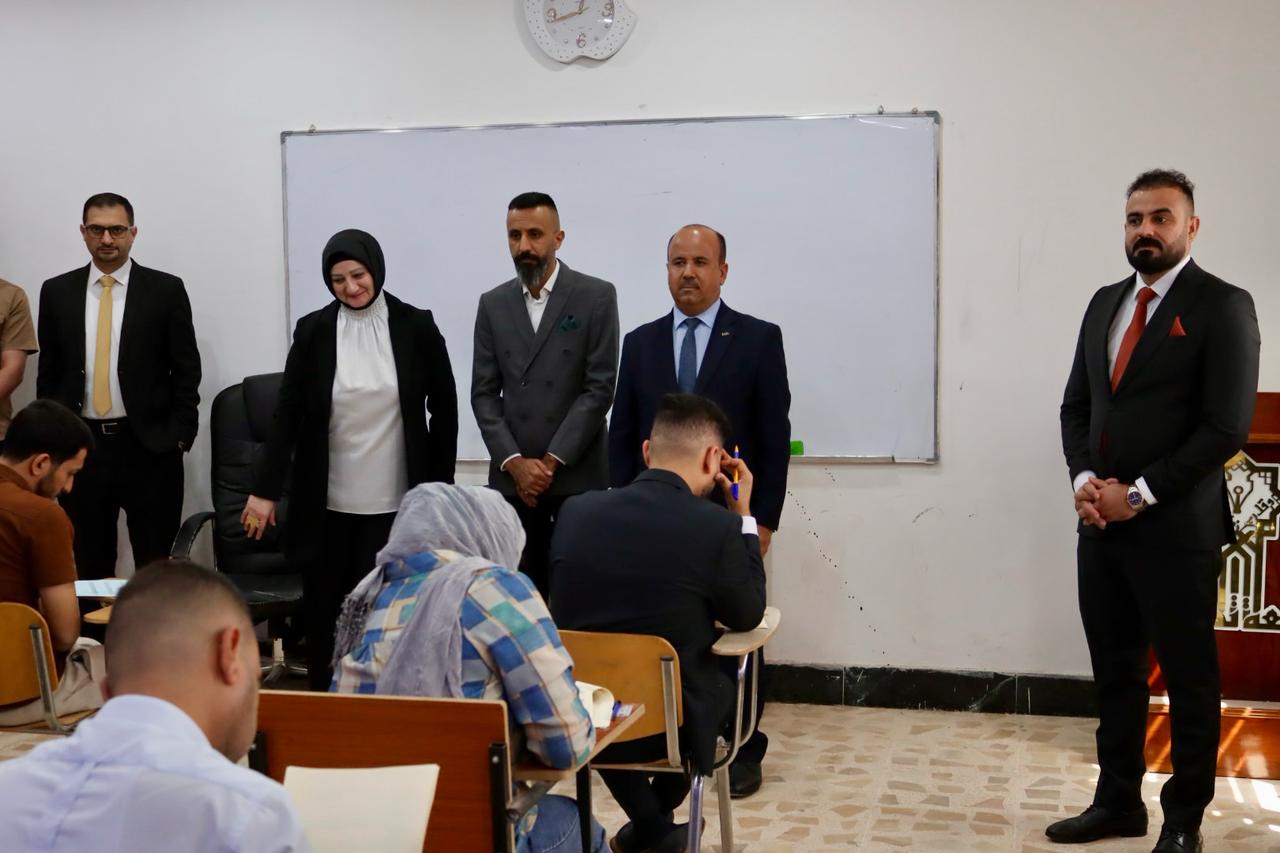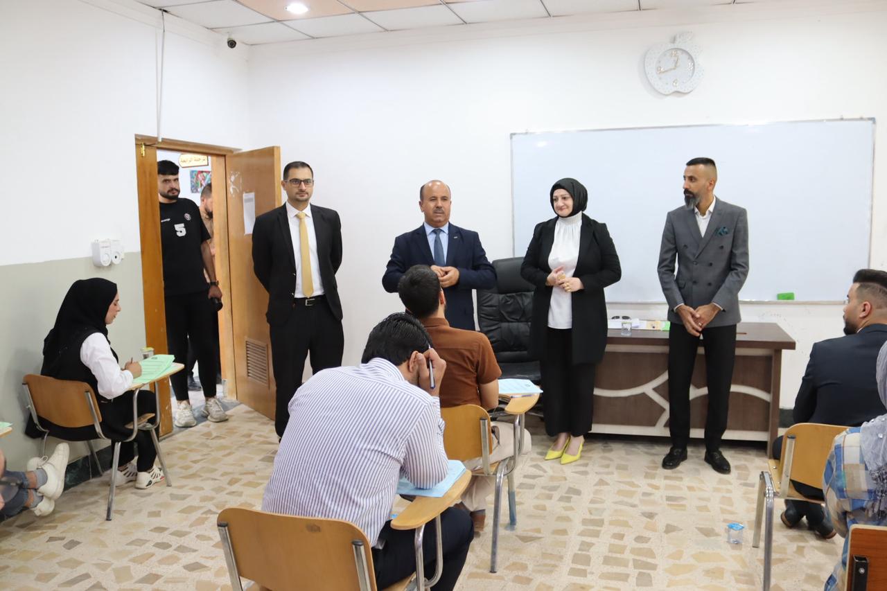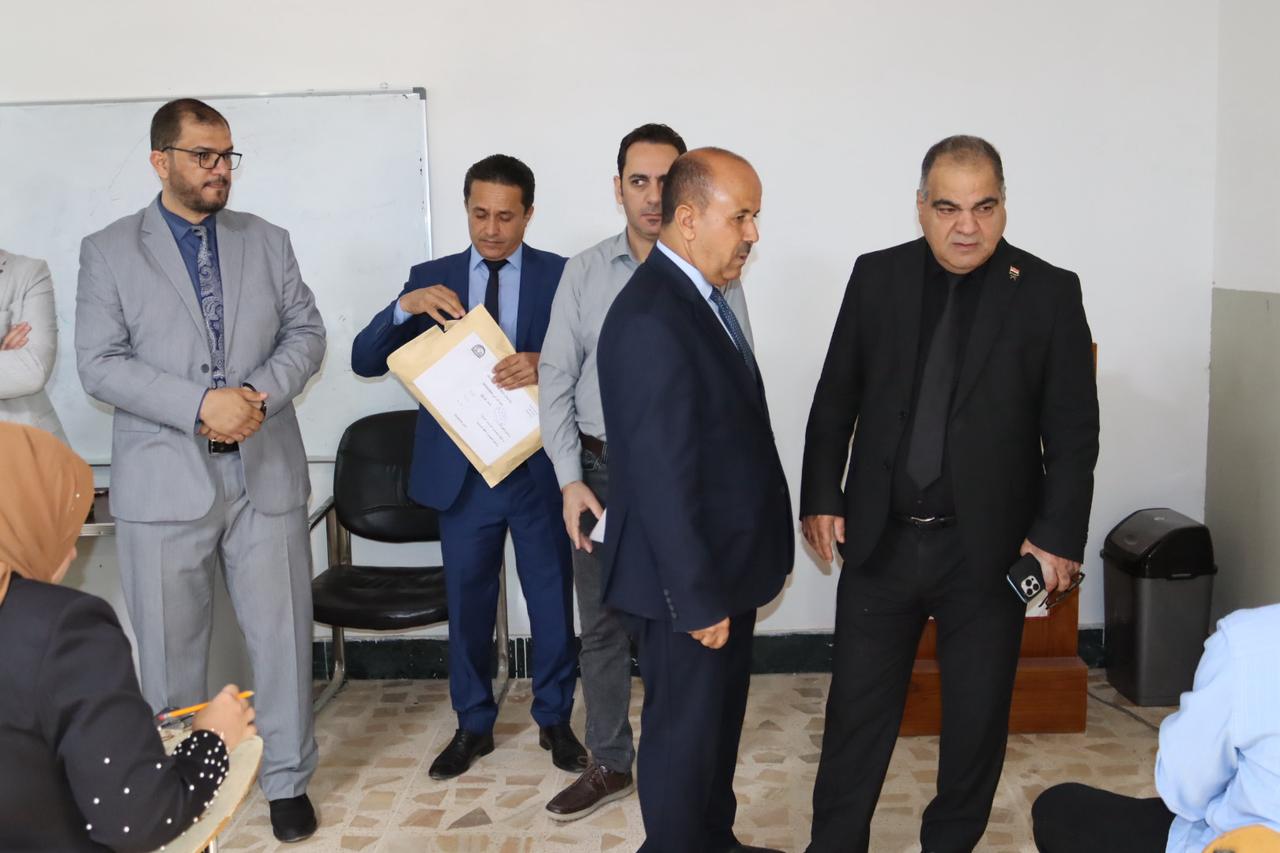 خلال ذلك زار السيد مساعد رئيس الجامعة للشؤون العلمية الأستاذ الدكتور حسن حسين إبراهيم الكلية وكذلك وفد من لجنة مركزية معدة من قبل رئاسة الجامعة لمتابعة الامتحان التنافسي في الكليات كافة وذلك لمتابعة والاطلاع على الامتحان التنافسي في الكلية.