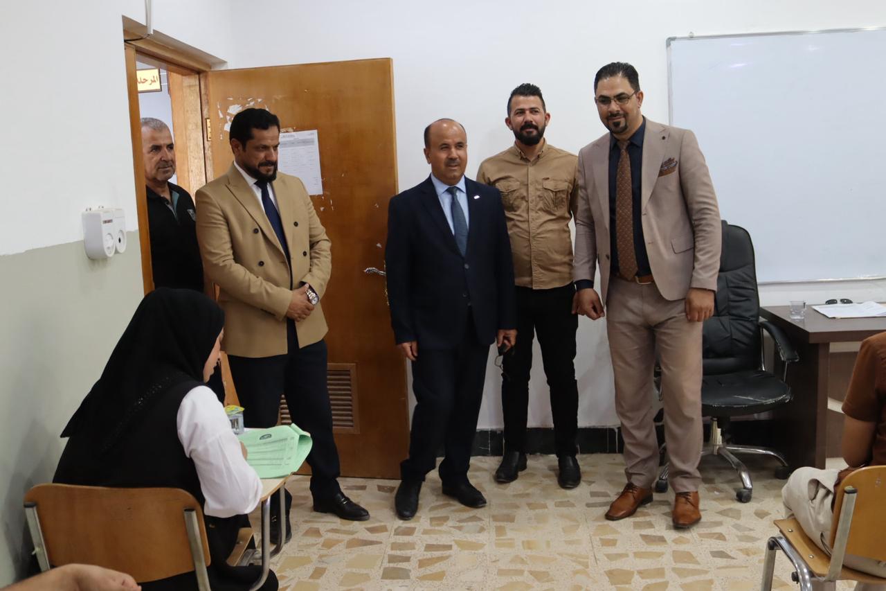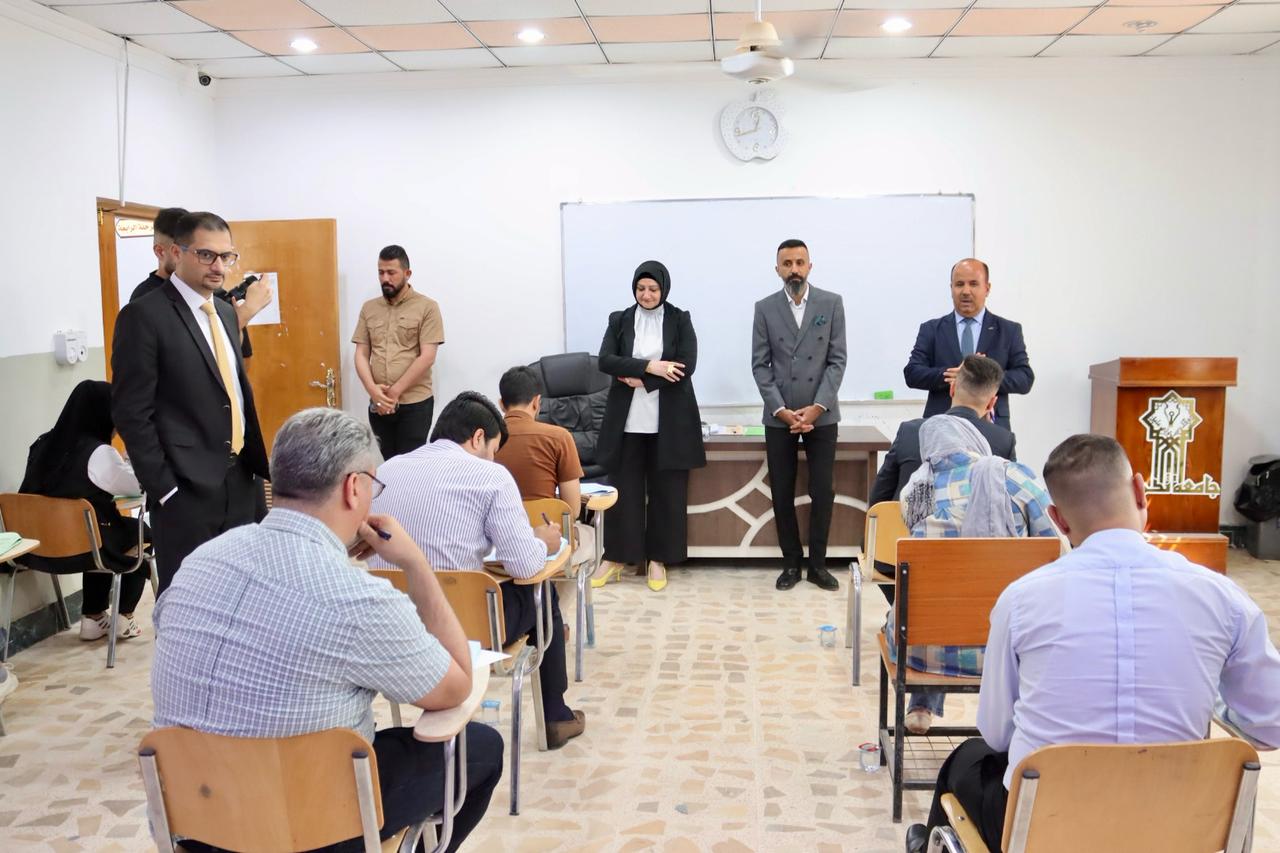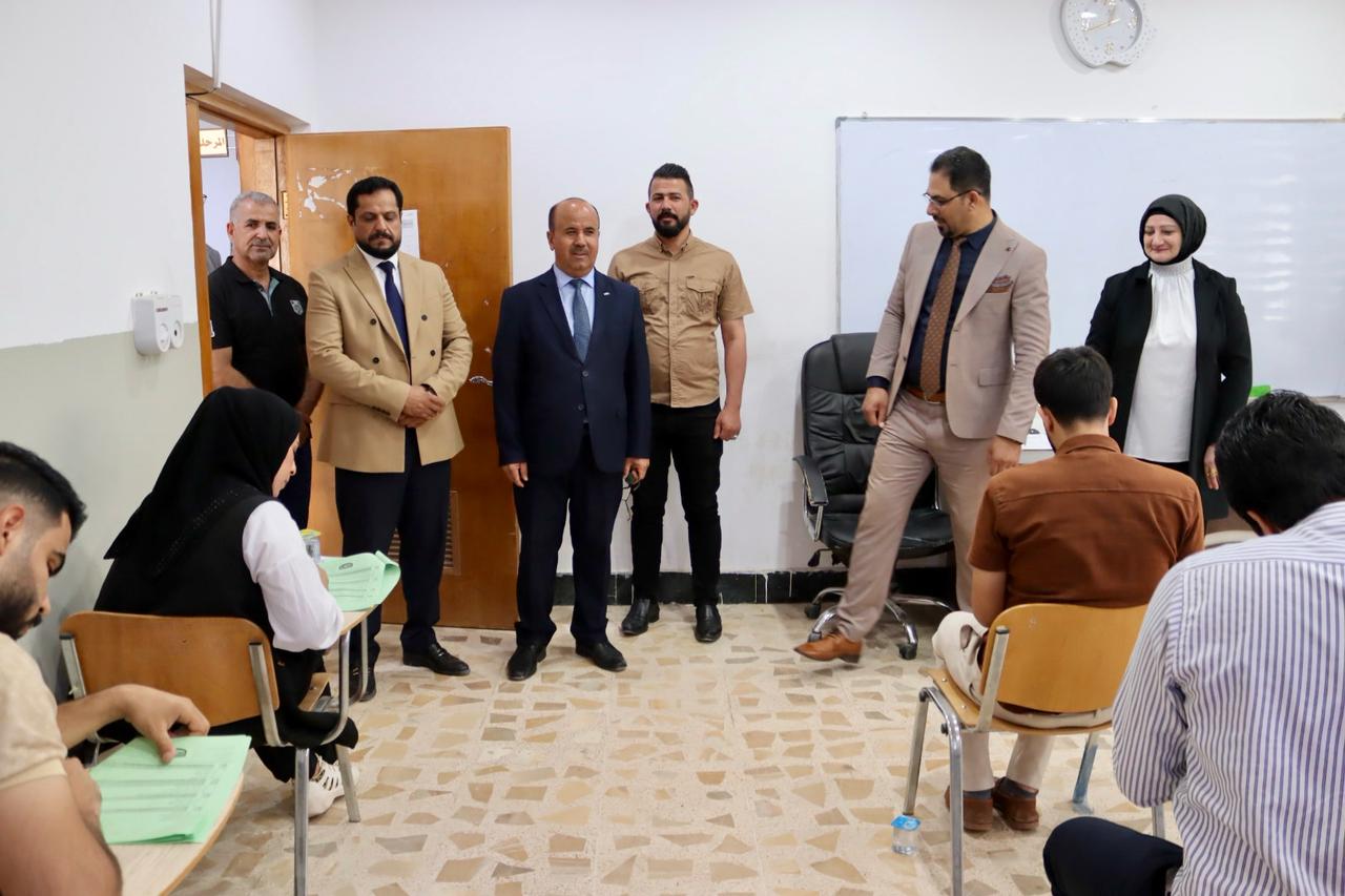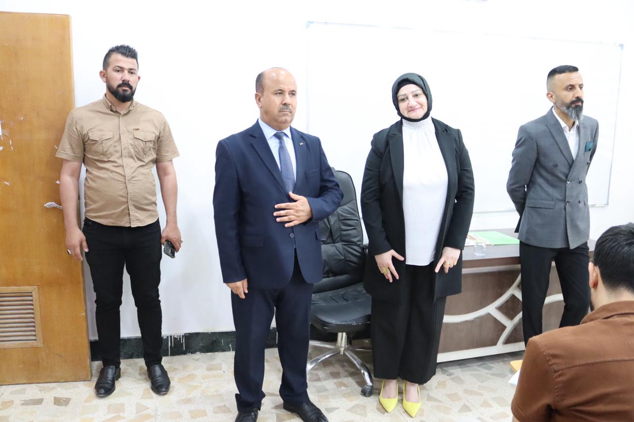 خلال ذلك زار السيد مساعد رئيس الجامعة للشؤون العلمية الأستاذ الدكتور حسن حسين إبراهيم الكلية وكذلك وفد من لجنة مركزية معدة من قبل رئاسة الجامعة لمتابعة الامتحان التنافسي في الكليات كافة وذلك لمتابعة والاطلاع على الامتحان التنافسي في الكلية.