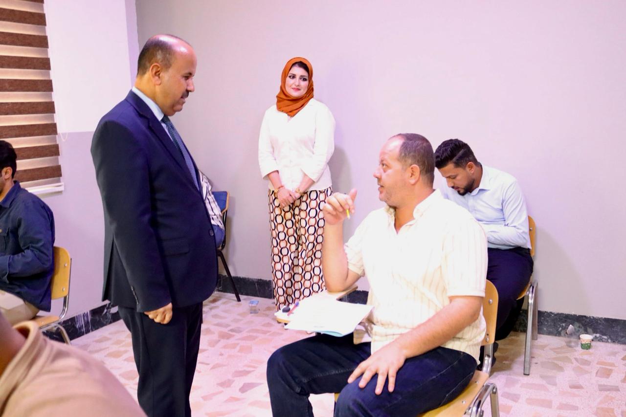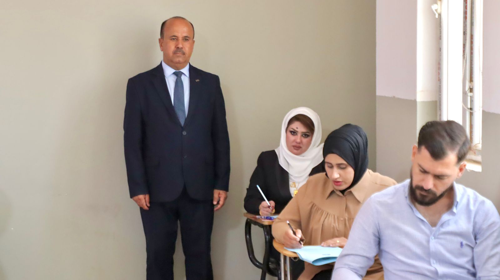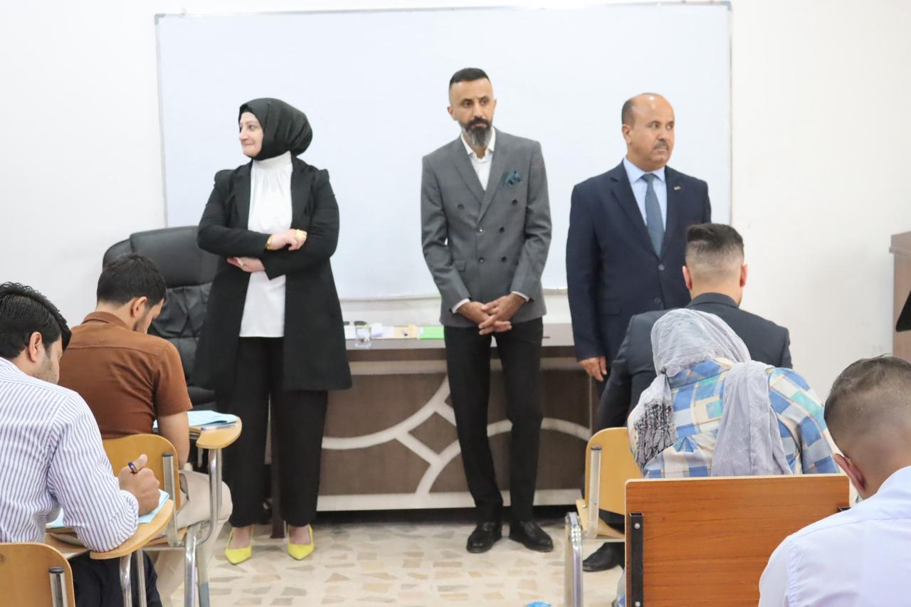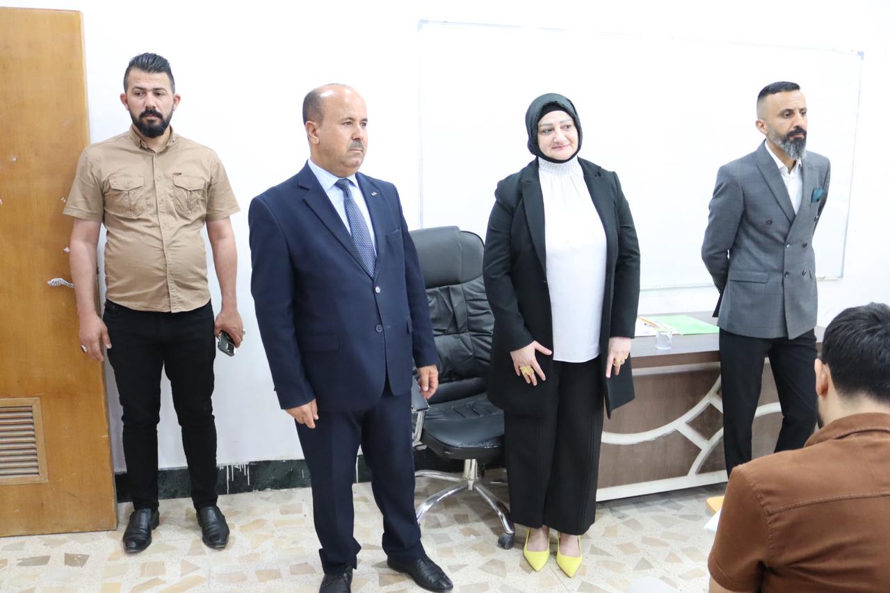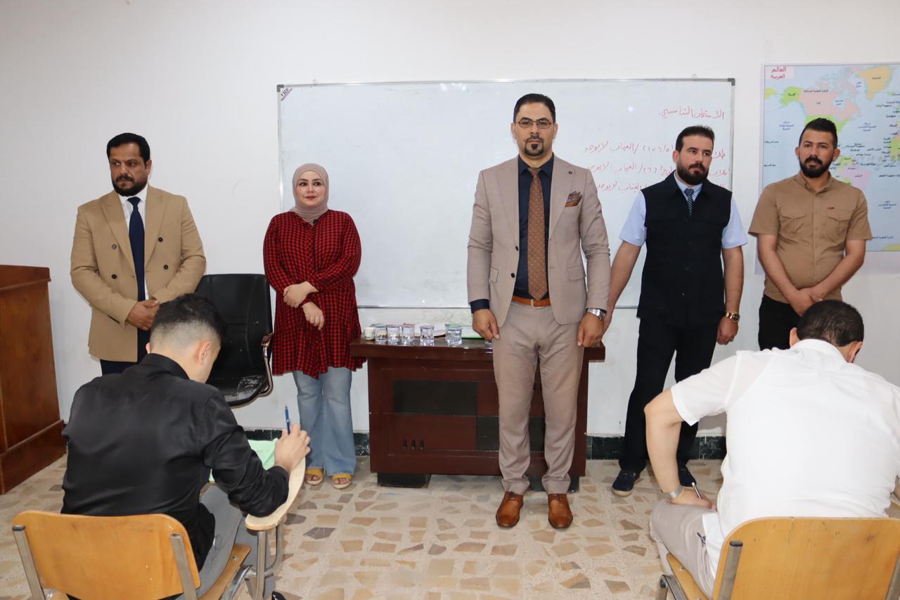 خلال ذلك زار السيد مساعد رئيس الجامعة للشؤون العلمية الأستاذ الدكتور حسن حسين إبراهيم الكلية وكذلك وفد من لجنة مركزية معدة من قبل رئاسة الجامعة لمتابعة الامتحان التنافسي في الكليات كافة وذلك لمتابعة والاطلاع على الامتحان التنافسي في الكلية.