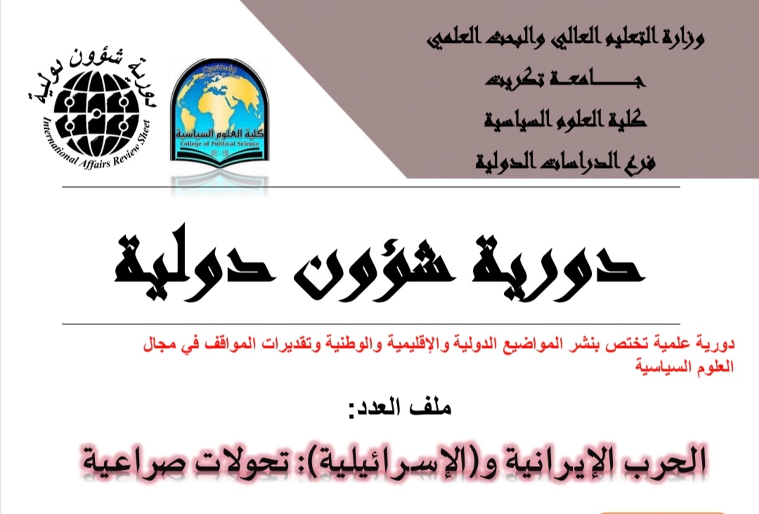باشراف السيد عميد كلية العلوم السياسية ا.د قاسم علوان سعيد المحترم وتحت عنوان "الحرب الايرانية و(الإسرائيلية) : تحولات صراعية" قام فرع الدراسات الدولية في الكلية باصدار العدد التاسع من دورية شؤون دولية لشهر حزيران 2025.