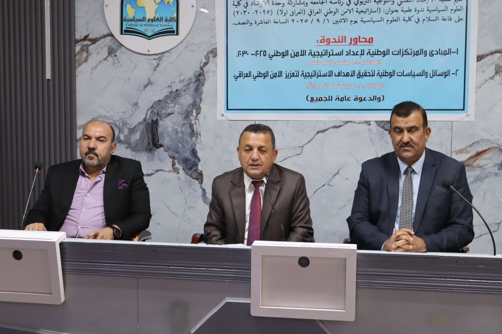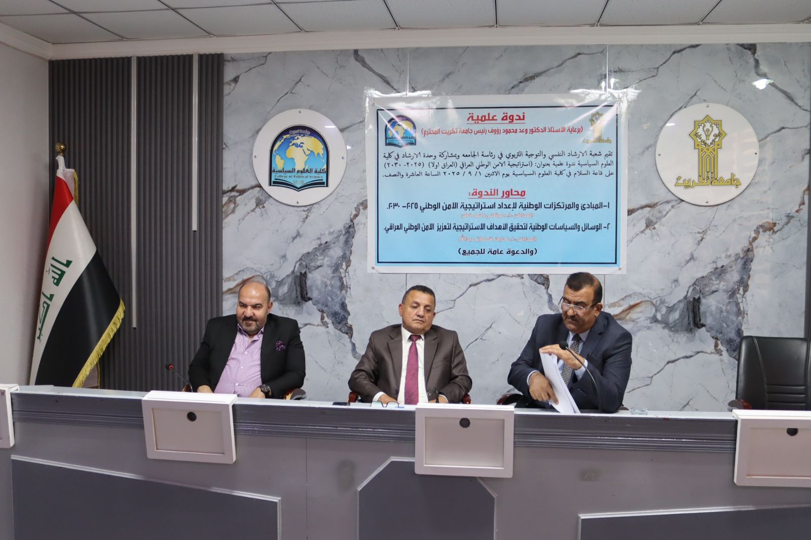 ندوة علمية بعنوان استراتيجية الامن الوطني العراقي (العراق اولا) (٢٠٢٥- ٢٠٣٠)