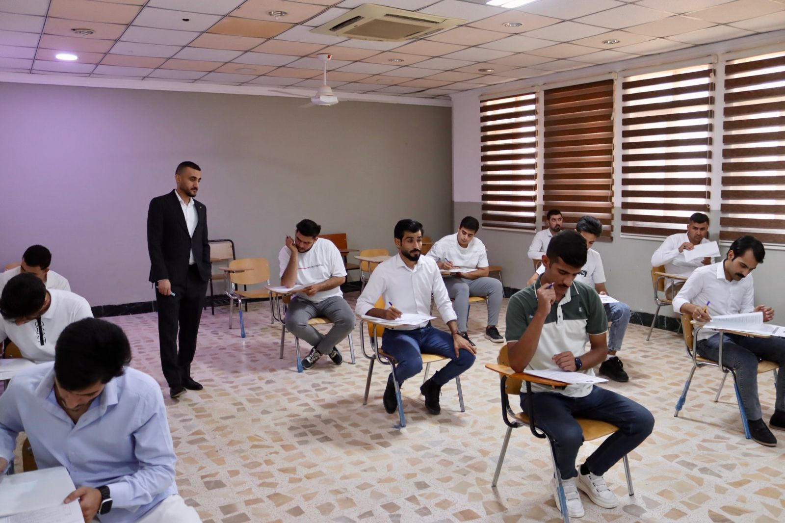 بدء طلبة كليتنا امتحانات الدور الثاني للدراسة الأولية والعليا الماجستير والدكتوراه خلال ذلك تفقد الأستاذ الدكتور قاسم علوان سعيد عميد الكلية برفقة السادة معاوني العميد العلمي والاداري القاعات الامتحانية للوقوف على انسيابية وإجراءات الامتحانات اذ تم الاطلاع على الأسئلة الامتحانية والاستماع الى الطلبة.