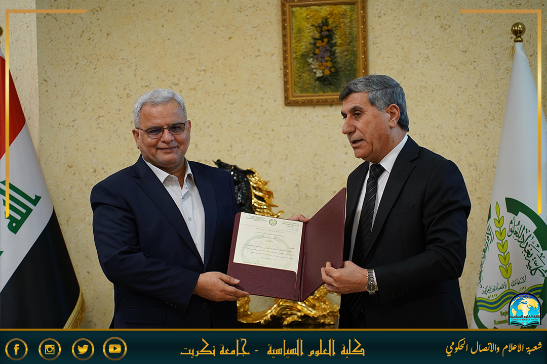 انطلاقا من الدور الذي تلعبه الجامعات العراقية في تحقيق الاستقرار المجتمعي شارك الدكتور قاسم علوان سعيد عميد كلية العلوم السياسية ممثلا عن جامعة تكريت في اجتماع اللجنة الوطنية الدائمة للتوعية والإرشاد المجتمعي يوم السبت الموافق 20/أيلول/2025 في كلية بغداد للعلوم الاقتصادية الجامعة وحسب الامر الديواني والصادر من مكتب رئيس مجلس الوزراء (251234) في 14/ 9/ 2025.