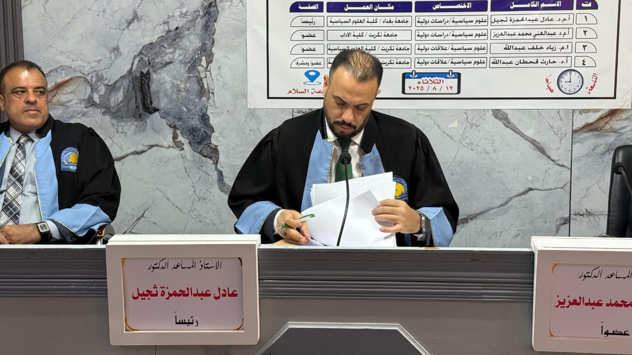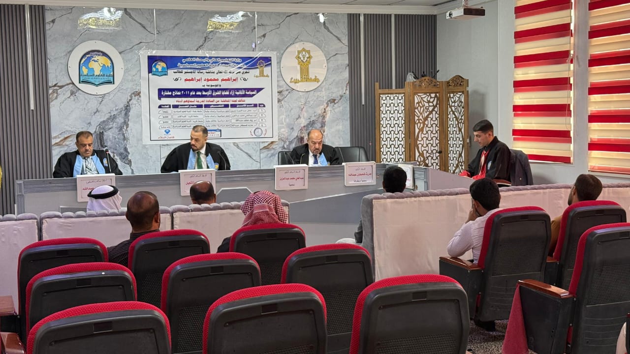 نوقشت في كلية العلوم السياسية رسالة الماجستير الموسومة بـ(السياسة الالمانية ازاء قضايا الشرق الأوسط بعد عام 2011"نماذج مختارة") للطالب إبراهيم محمود ابراهيم على قاعة السلام اليوم الثلاثاء الموافق 12/8/2025.