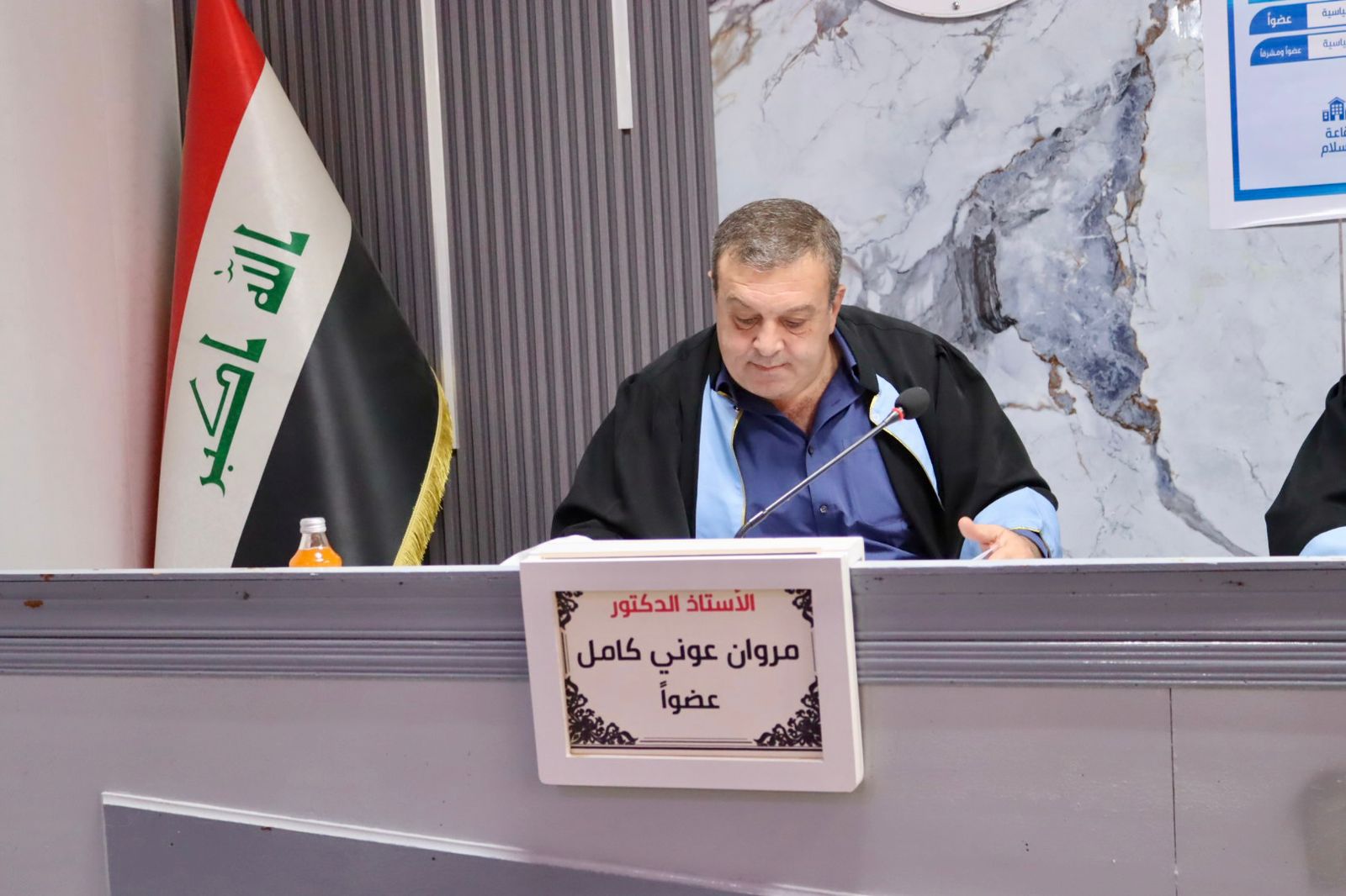 حضر المناقشة السيد عميد الكلية الأستاذ الدكتور قاسم علوان سعيد والسادة معاوني العميد العلمي والإداري وعدد من تدريسيي الكلية وموظفيها وطلبتها.